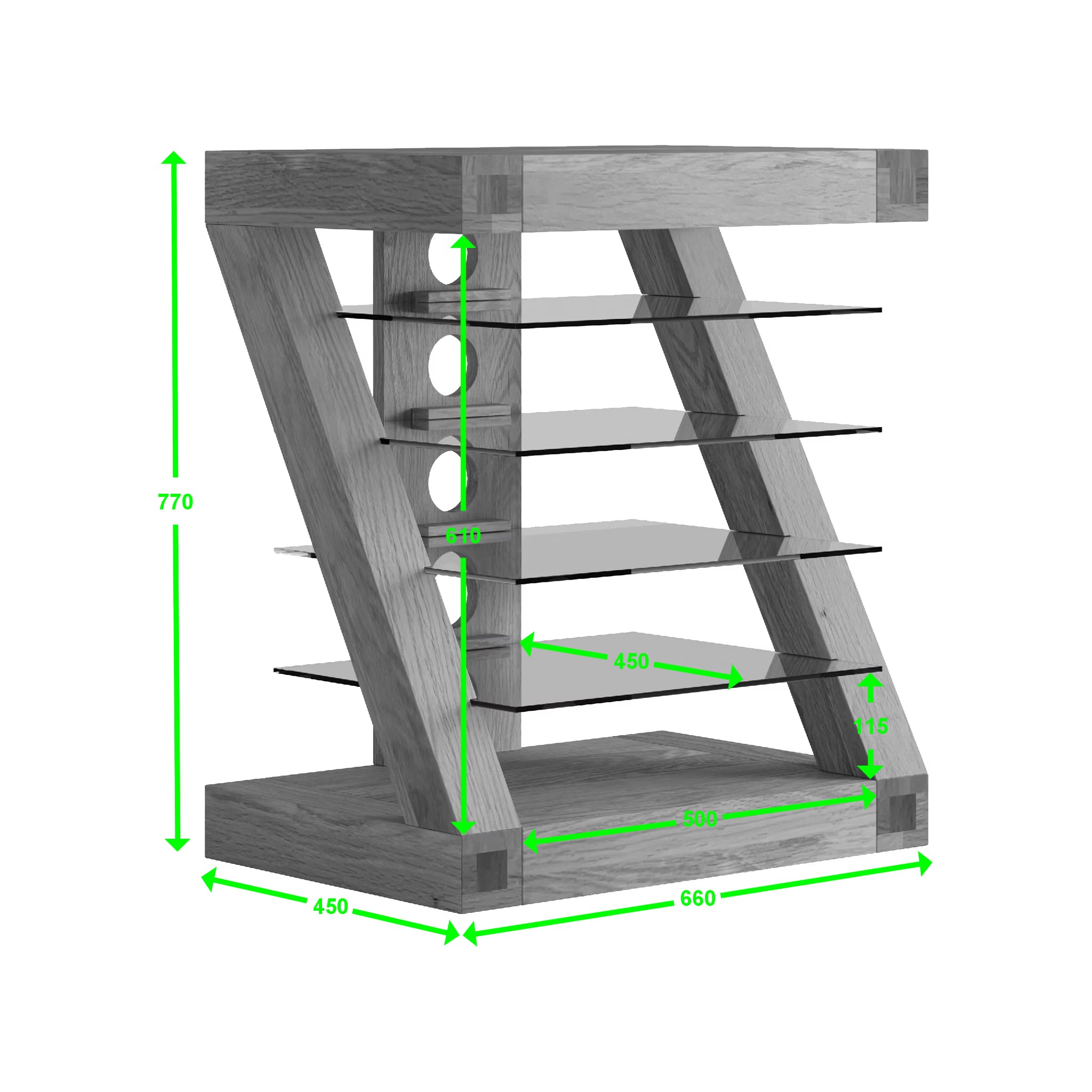 The Z Hi-Fi Unit is a stunning piece of furniture meticulously crafted from 100% solid oak, guaranteeing exceptional durability and longevity. This elegant unit features four removable glass shelves, providing ample space to neatly organize and proudly display your valuable Hi-Fi systems and audio accessories. With a generous shelf space of 500mm x 450mm and a shelf spacing of 115mm, you can effortlessly showcase your collection while maintaining a sleek and organized look. The lacquer finish adds a touch of sophistication, enhancing the natural beauty of the oak.