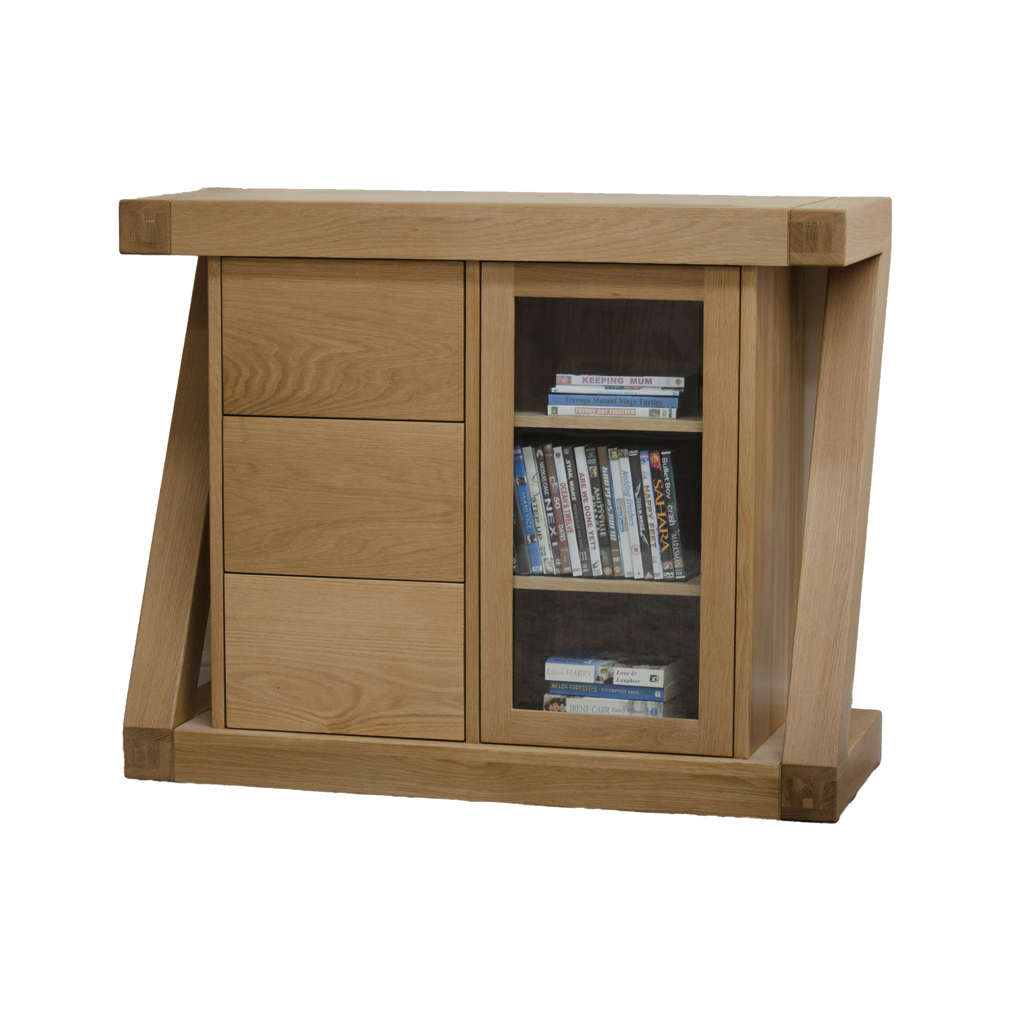 The Z Small Glazed Chest is a stunning piece of furniture that exudes elegance and functionality. Crafted from 100% solid oak with a beautiful lacquer finish, this chest showcases impeccable craftsmanship and durability. Its compact design belies its ample storage capacity, featuring three spacious drawers and a glass door revealing two adjustable/removable oak shelves, perfect for displaying your treasured possessions. The rear cable access hole ensures practicality in managing cables, maintaining a neat and tidy appearance in your living space.