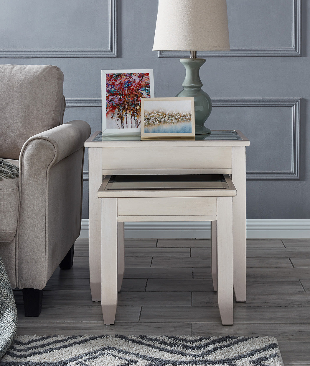 The Gallo Nest of Tables offers a perfect blend of elegance and functionality for your living space. Featuring antique brass hardware and stylish mirrored glass panels, these tables add a touch of sophistication to any room. With no assembly required, they are ready to use straight out of the box, making them a convenient and stylish addition to your home.