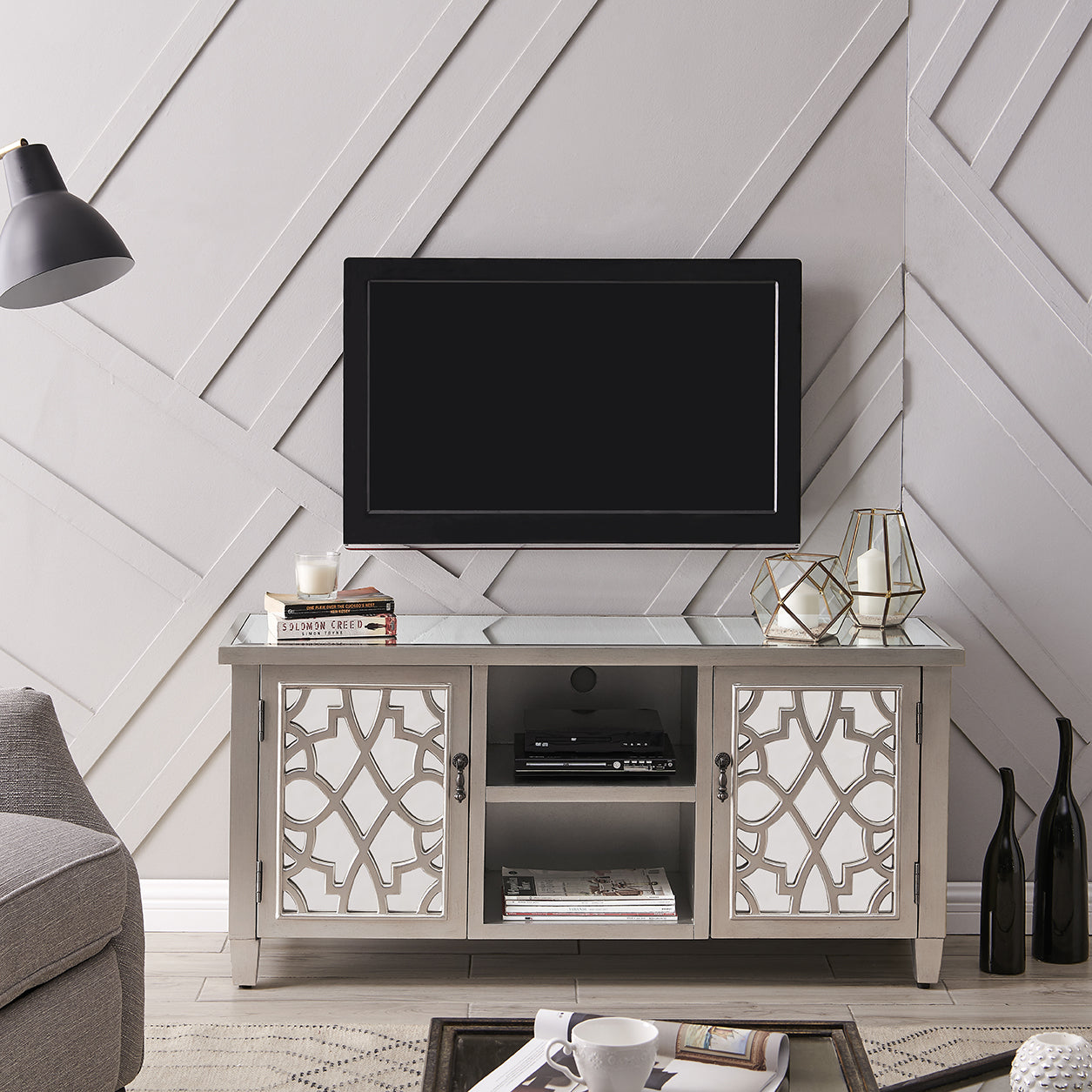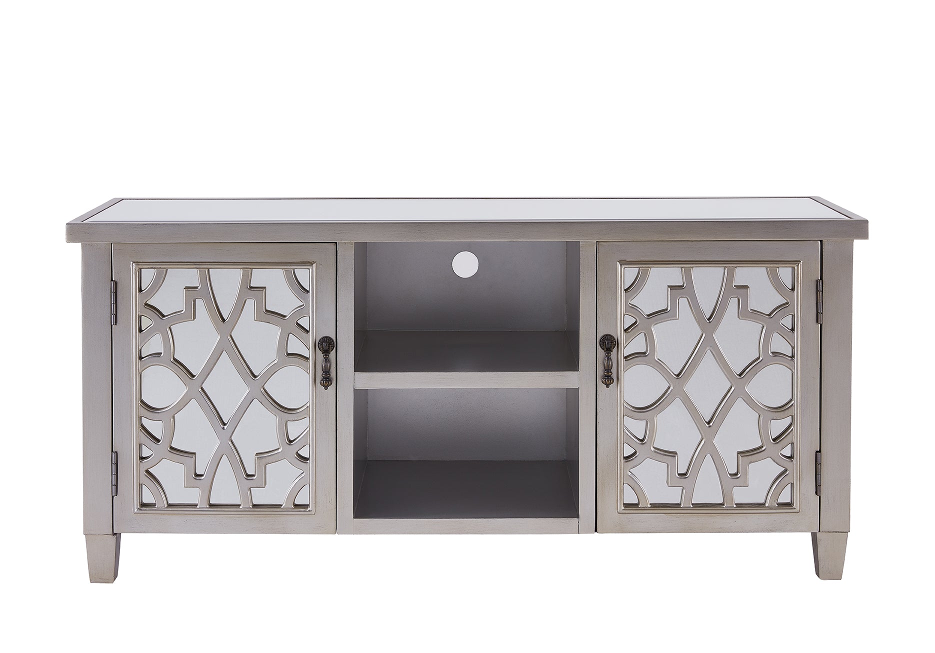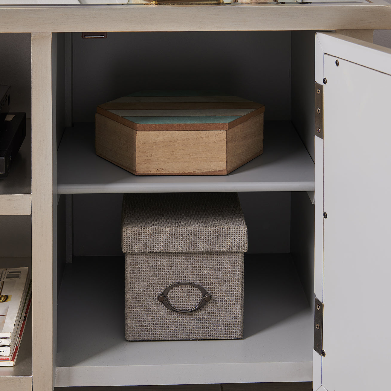 The Gallo TV Unit combines functionality with a touch of elegance, making it a perfect addition to any living room. With its spacious media storage in two exterior shelves, this unit offers ample space to organize your entertainment essentials. The antique brass hardware adds a classic touch to the overall design, elevating the style of your space effortlessly.