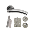 The Jupiter Privacy Chrome Handle Hardware Pack provides a stylish and practical solution for maintaining privacy. This set includes handles, hinges, a latch, and a bathroom thumbturn with coin release, ensuring both security and elegance with a sleek chrome finish to complement various interior styles.
