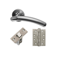 The Saturn Handle Hardware Pack is a stylish upgrade for internal doors, featuring polished or satin chrome finishes. This premium set includes handles, hinges, and a tubular latch, offering a sleek and modern look to enhance any interior setting.