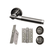 The Vega Privacy Handle Hardware Pack offers style and functionality with a bathroom thumbturn and coin release in polished chrome. This set enhances privacy and security while adding a modern touch to any interior.
