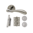 The Venus Privacy Handle Hardware Pack combines elegance and functionality with its polished chrome and satin nickel finishes. Featuring a bathroom thumbturn and coin release, this set ensures privacy and style for any interior space.