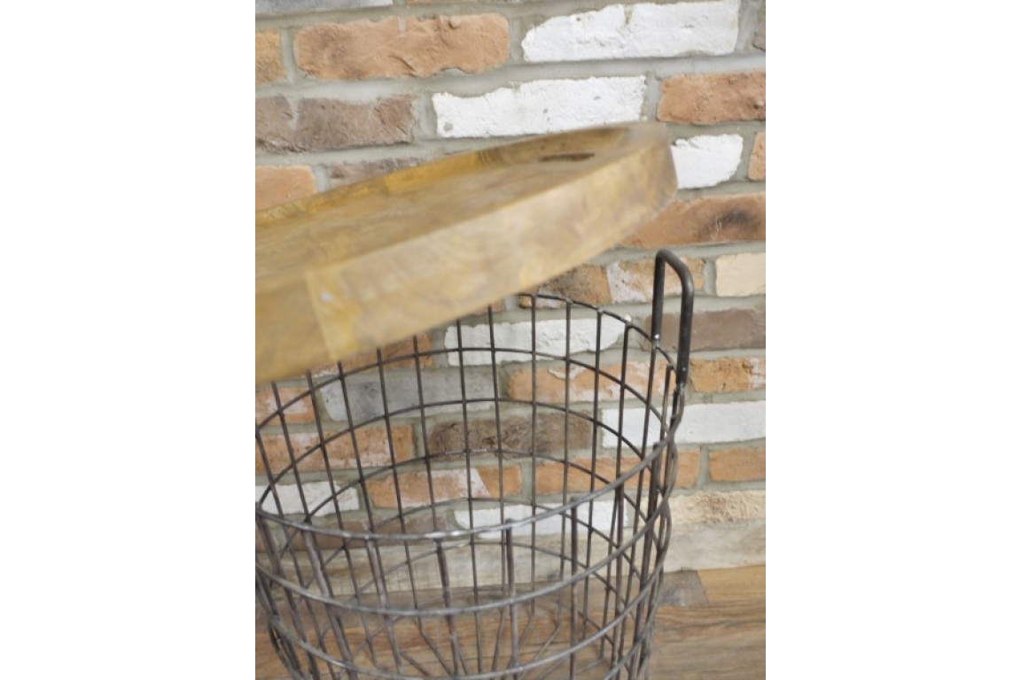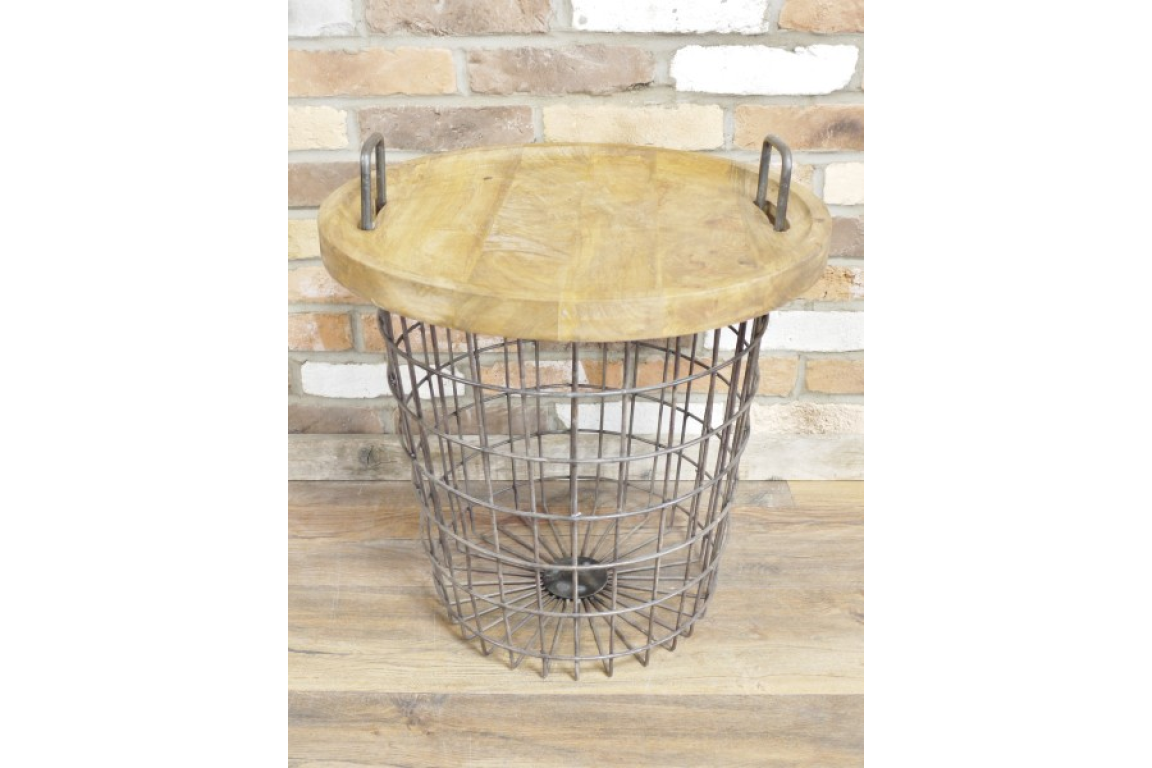 The table's top surface is made of durable wood, providing a sturdy platform for displaying decorative items or holding everyday essentials. The integrated basket underneath offers convenient storage for blankets, cushions, or books, keeping your living space neat and organised.