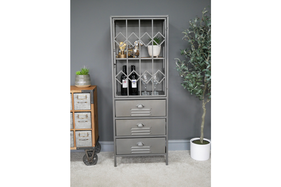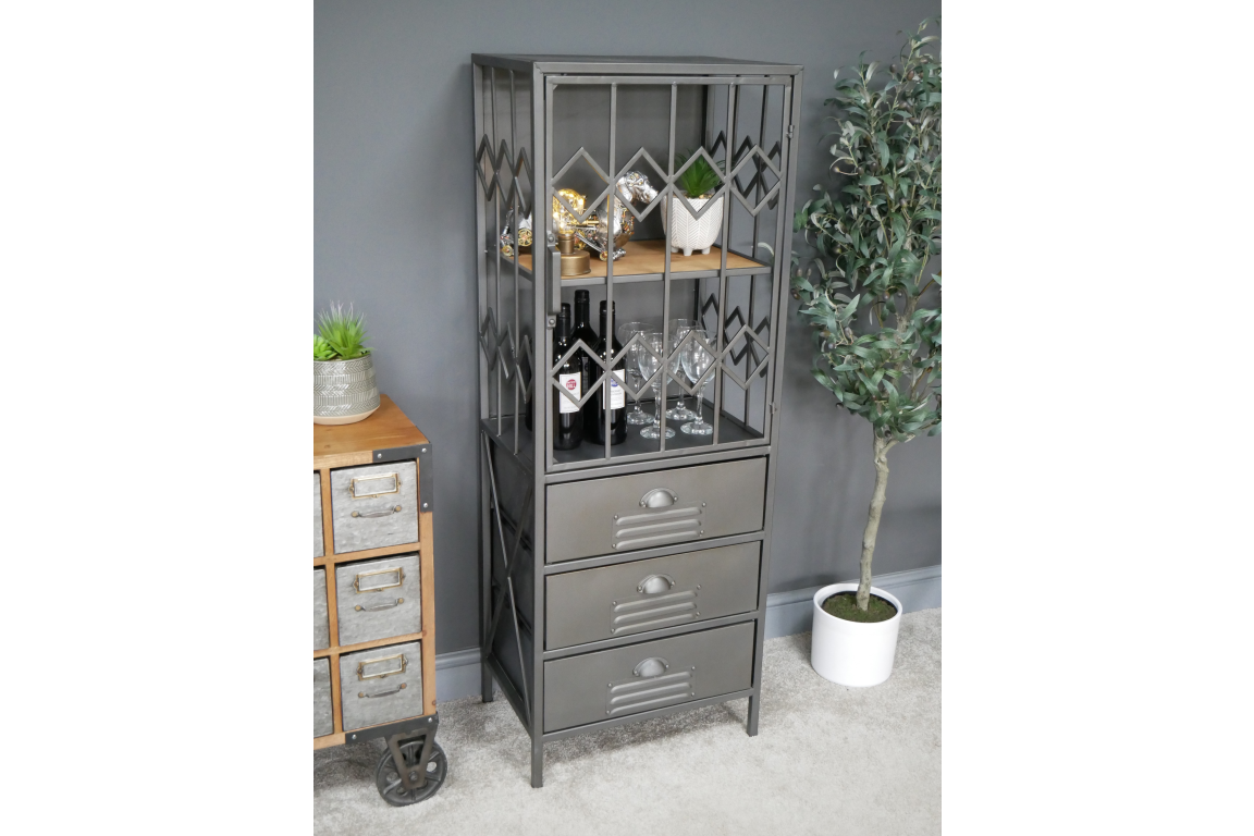 This display cabinet exudes industrial charm with its combination of metal and fir wood. The sleek metal frame provides a modern touch, while the warm tones of the fir wood shelves add a natural element to the design. Its minimalist style allows it to blend seamlessly with a variety of interior decor styles, from contemporary to rustic.