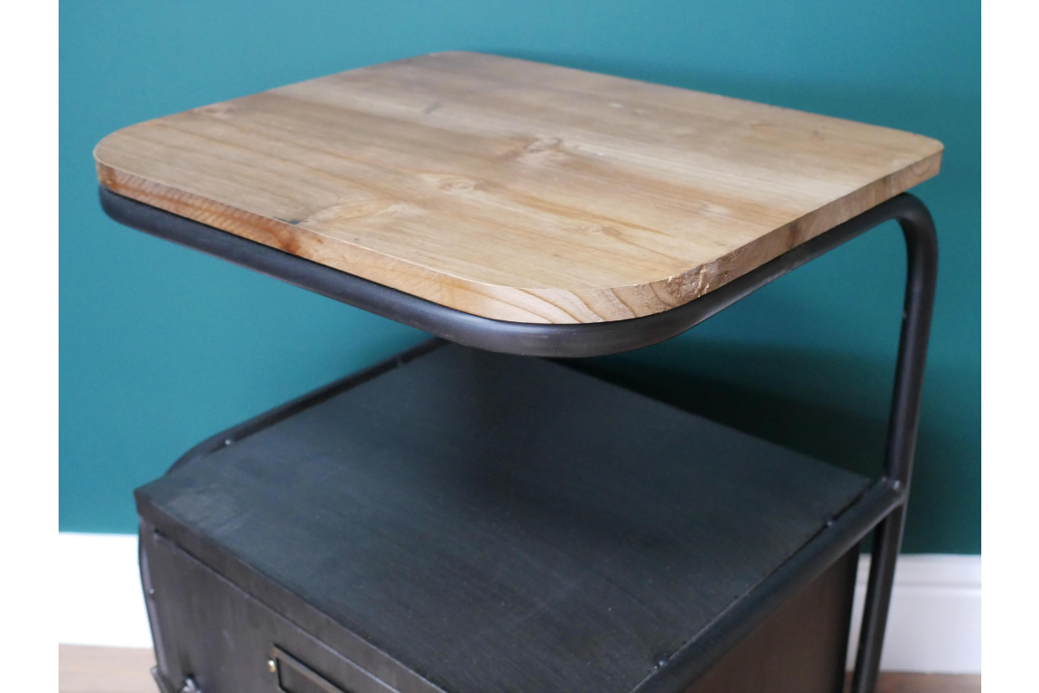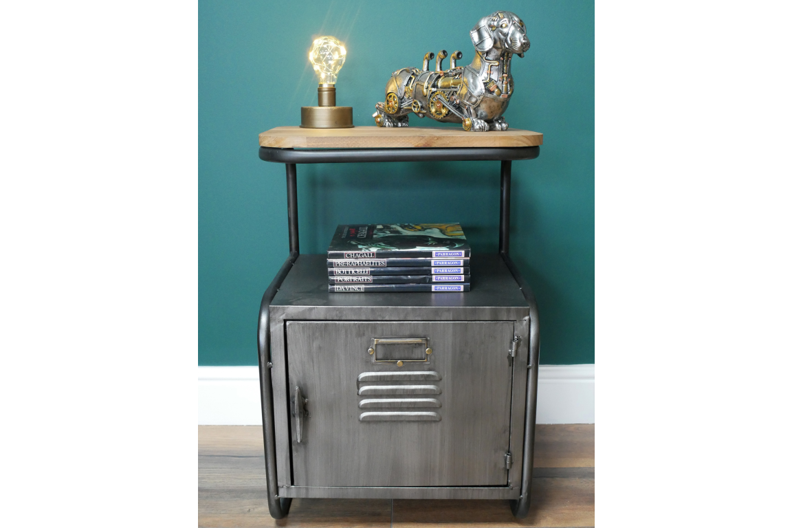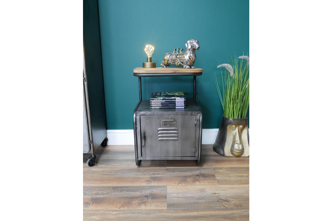 Crafted for both style and functionality, this bedside cabinet provides convenient storage for bedtime essentials while doubling as a trendy accent piece. The spacious top surface is ideal for placing a lamp, books, or decorative items, while the drawer and open shelf offer practical storage solutions for keeping clutter at bay. Whether used in a bedroom as a bedside companion or in a living room as a unique side table, this Industrial Bedside Cabinet is sure to make a statement in any space.