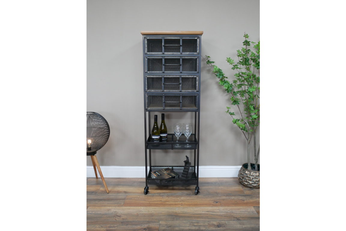 This industrial cabinet combines rugged style with practical functionality, perfect for adding an urban edge to any room. The cabinet features a sturdy metal frame with distressed accents, giving it an authentic industrial look. The sleek design is versatile and suits various decor styles, from modern lofts to rustic farmhouse interiors.