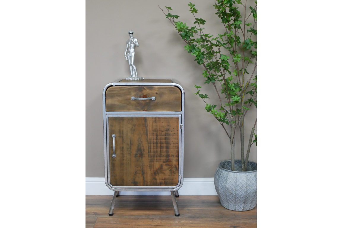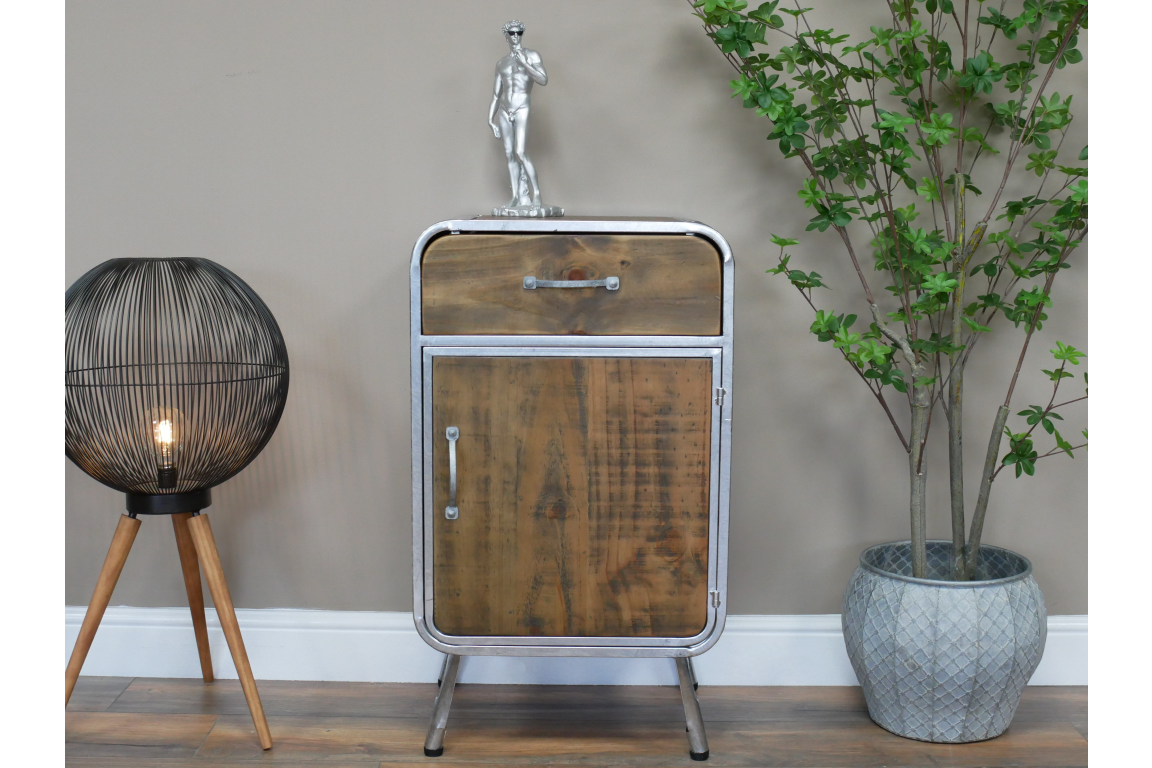 This industrial cabinet combines a rugged aesthetic with modern functionality, making it a versatile addition to any home or office space. The cabinet features a sleek metal frame with a distressed finish, giving it an authentic industrial look that complements a variety of decor styles.
