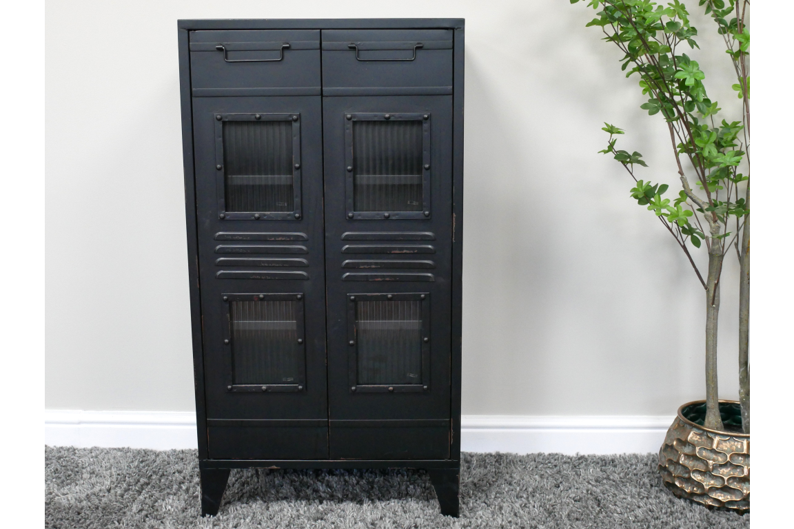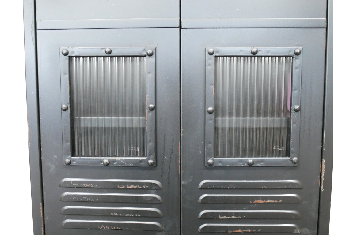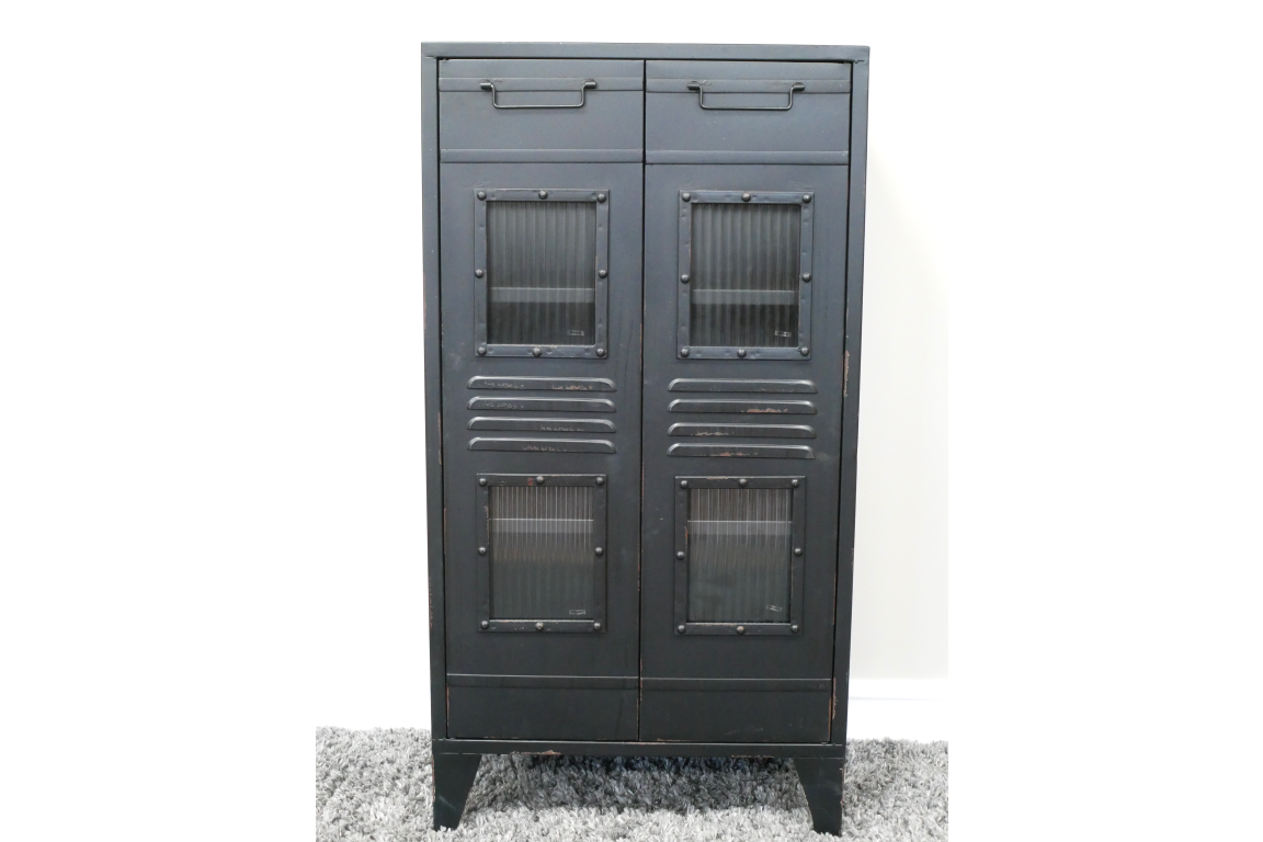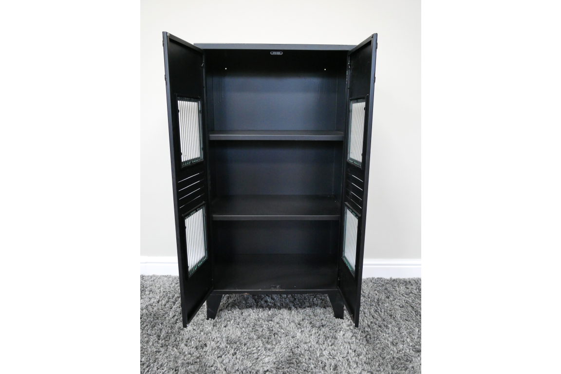 Constructed from durable metal, this cabinet is not only stylish but also practical. With ample storage space behind its doors, it is ideal for keeping your belongings organised and out of sight. Whether used in the living room to store books and media accessories or in the bedroom to hold clothing and linens, this industrial cabinet is a functional and stylish storage solution.