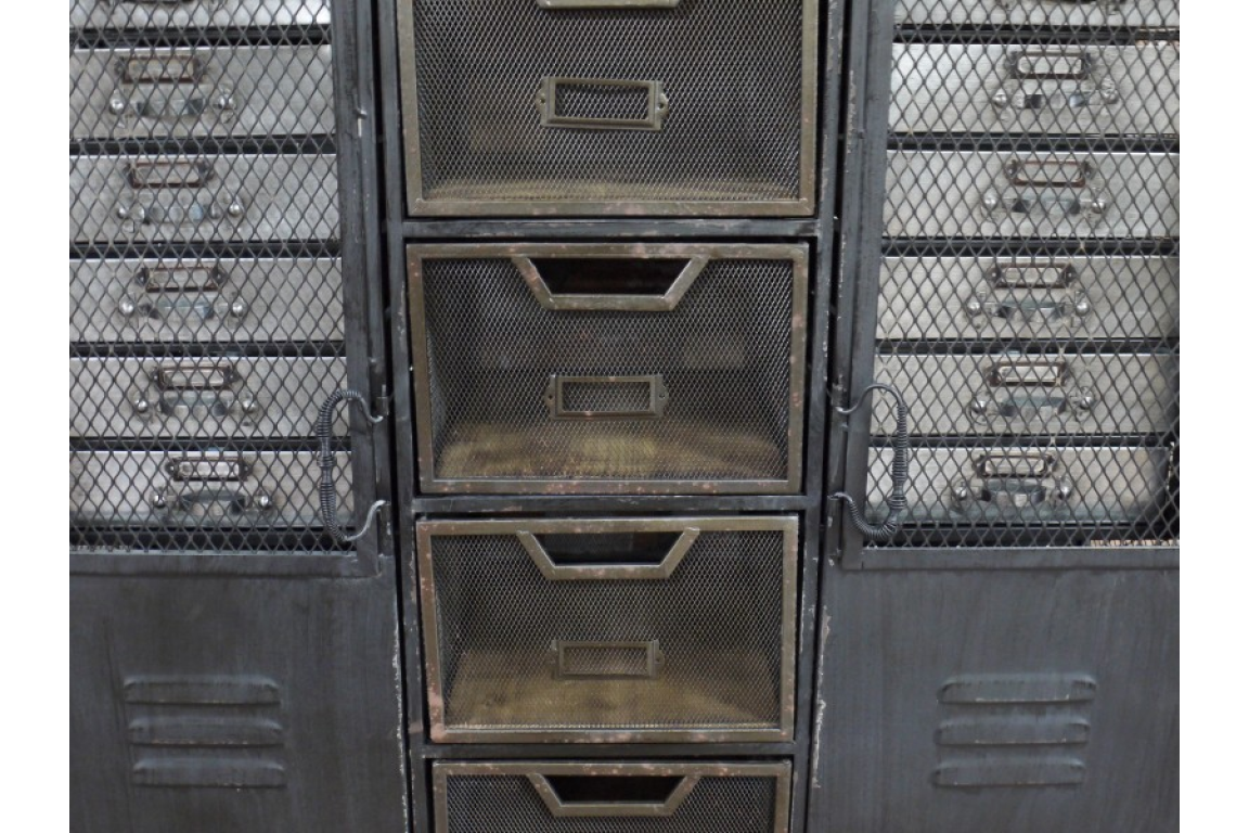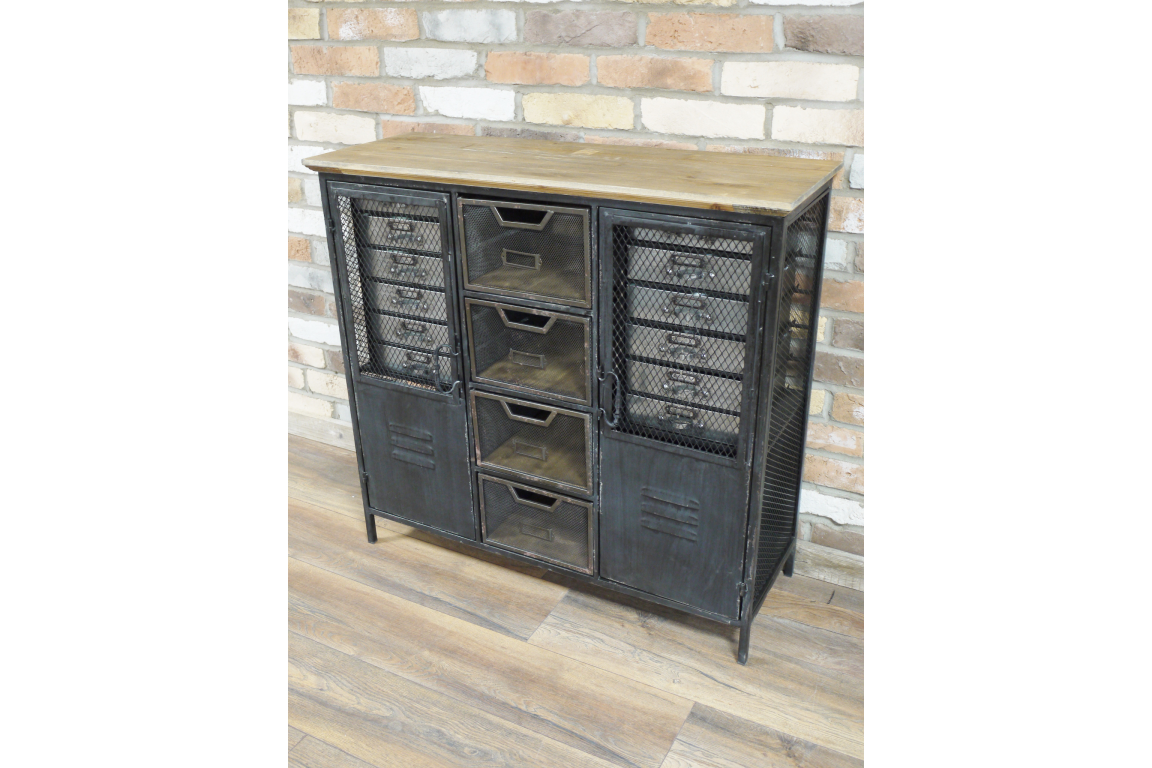 This industrial cabinet brings a rugged yet stylish look to any space with its blend of metal and wood materials. The sleek metal frame is paired with rustic wood panels, creating a modern industrial aesthetic that complements both contemporary and traditional interiors. The cabinet features clean lines and a simple design, making it versatile for use in living rooms, bedrooms, or home offices.