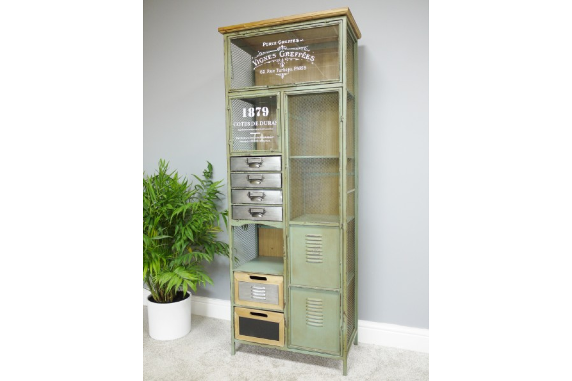 This industrial cabinet is a statement piece for any modern home or office. With its sleek metal frame and rustic wooden shelves, it combines contemporary design with a touch of vintage charm. The cabinet's industrial style is perfect for adding character to any space, whether used for storage in a living room or as a display unit in a trendy loft apartment.