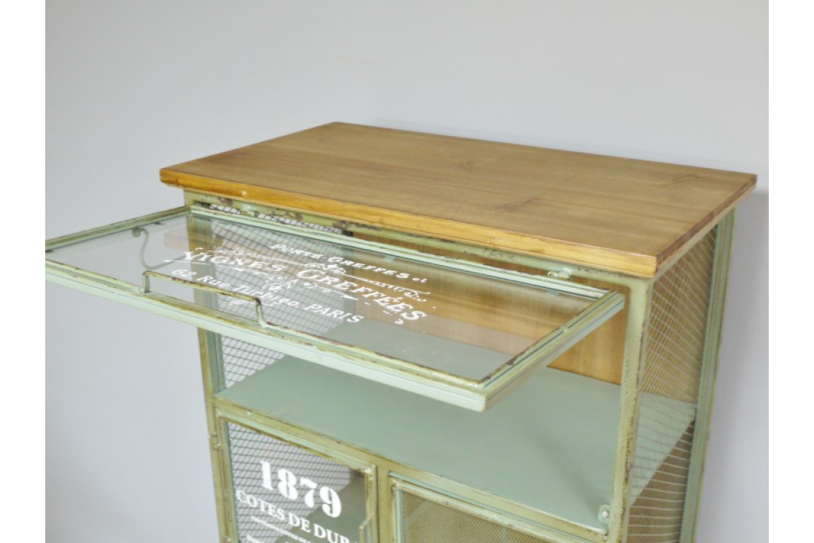 Constructed from durable materials, this cabinet is not only stylish but also practical. The spacious shelves provide ample storage for books, decorative items, or kitchen essentials, making it a versatile piece of furniture for various purposes. The industrial cabinet is a perfect blend of form and function, adding a touch of urban flair to any interior.
