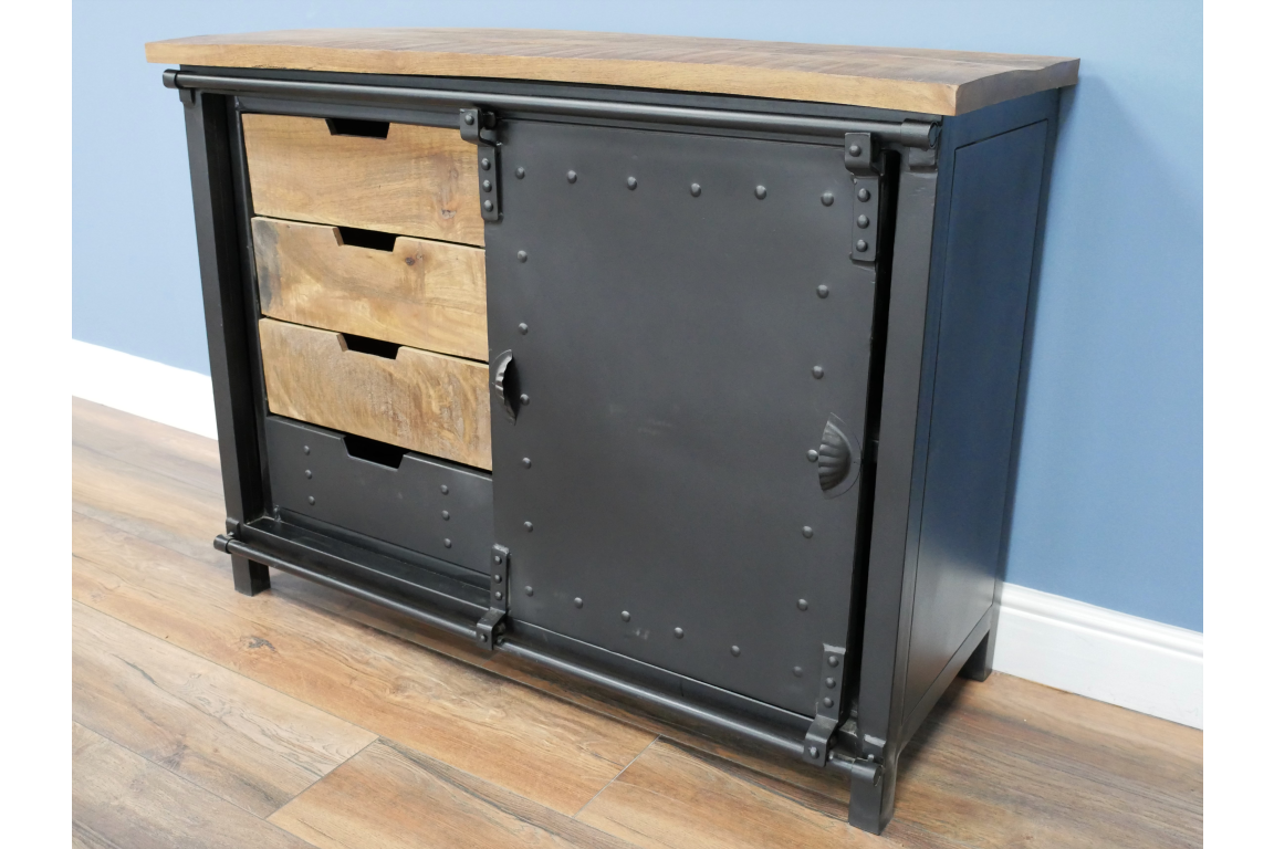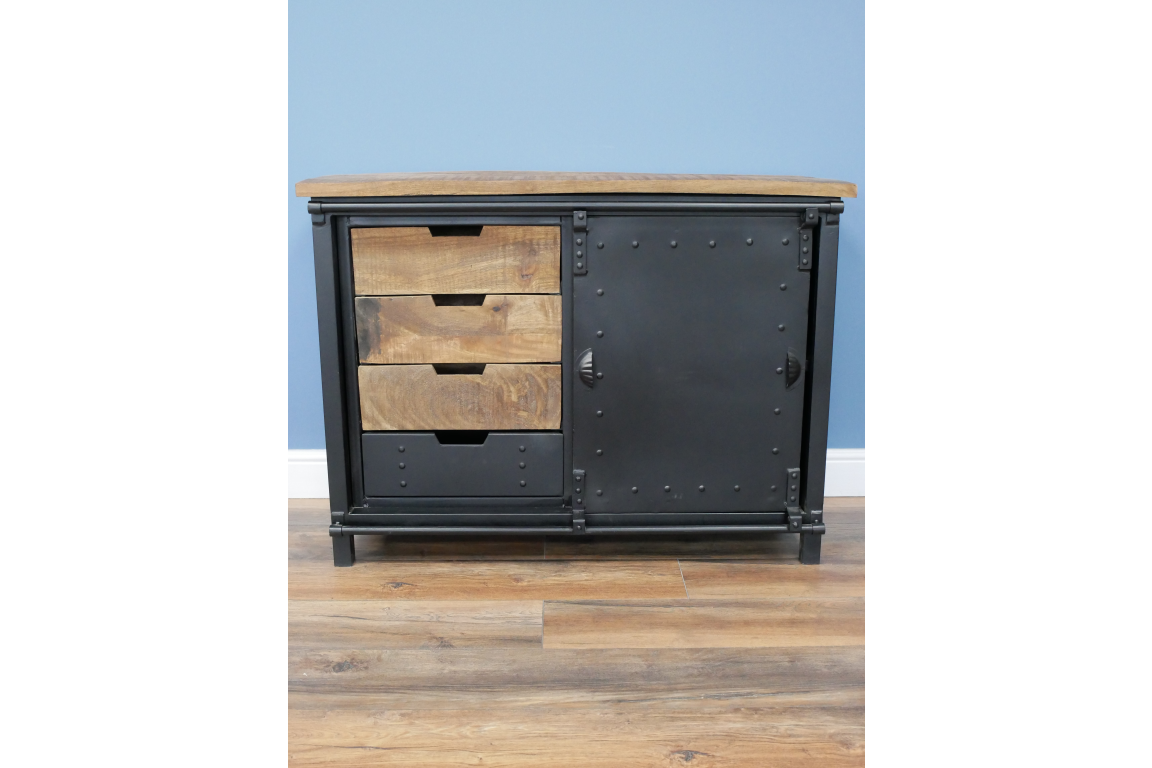 This industrial cabinet exudes a rugged and robust style that is perfect for adding a touch of urban charm to any space. The combination of iron and mango wood creates a striking contrast, blending the warmth of wood with the strength of metal. Its sleek and minimalist design makes it versatile, fitting seamlessly into modern, industrial, or even eclectic interiors.