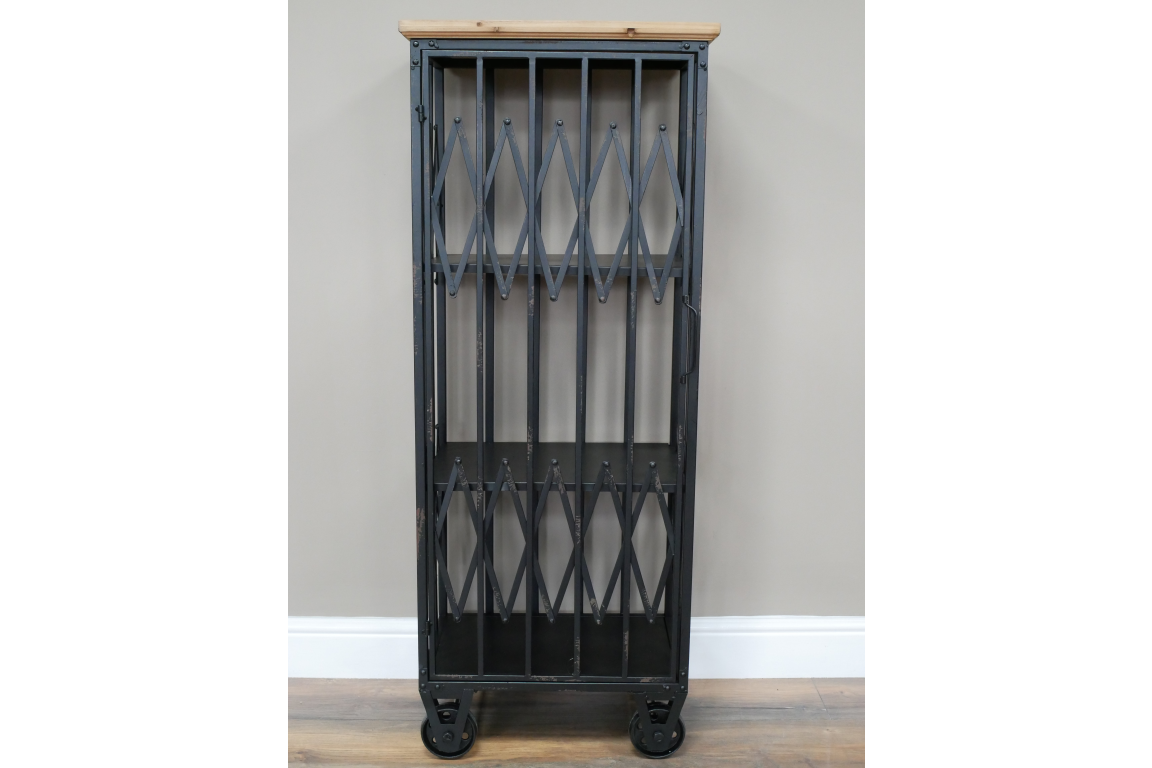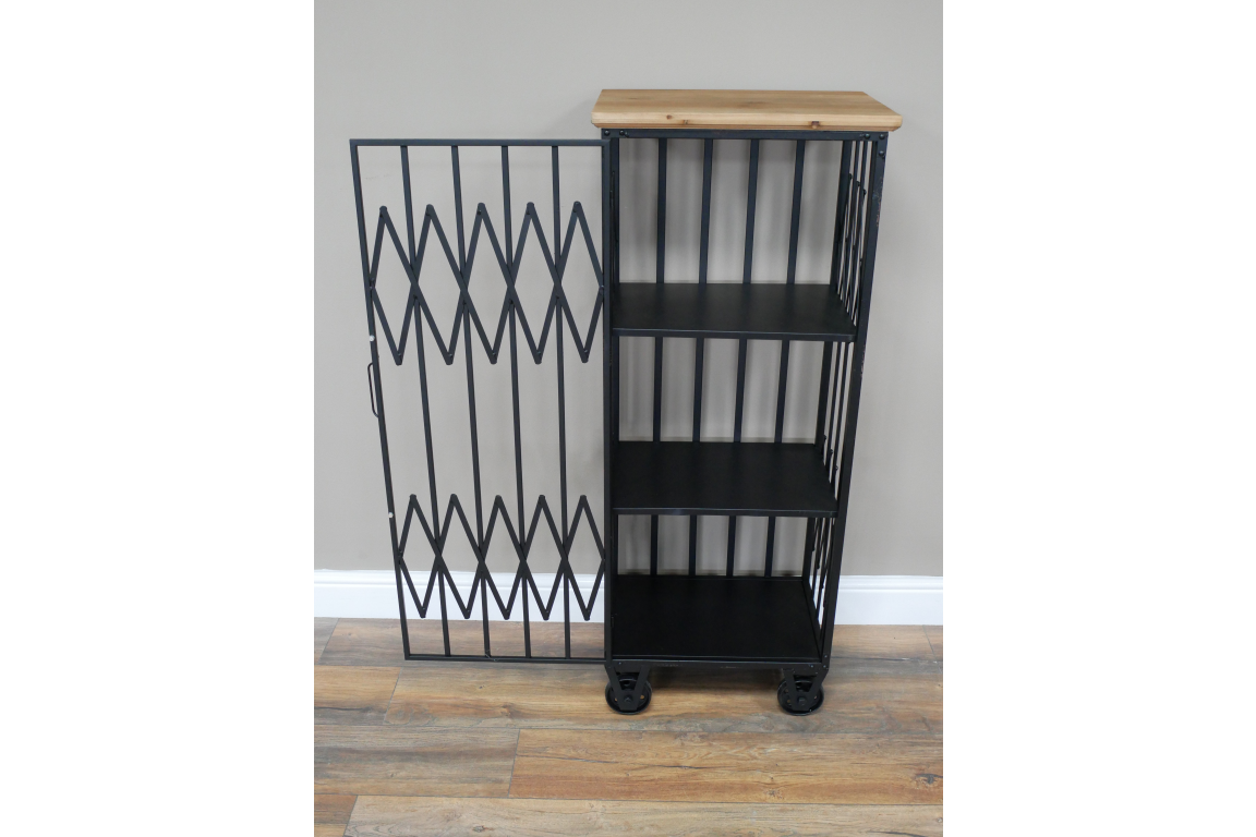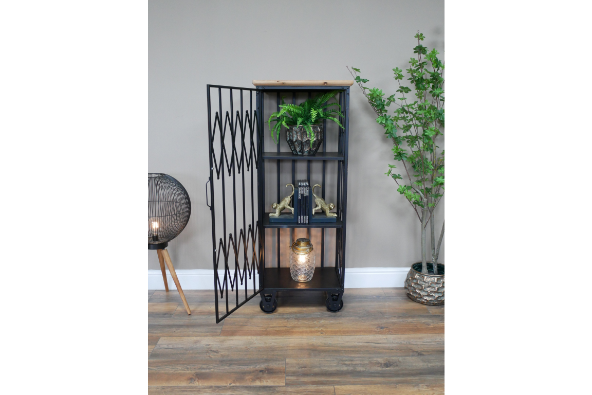 This industrial cabinet combines rugged style with practical functionality, making it a versatile addition to any modern home or office space. Its sleek metal frame and distressed wood panels create a striking industrial look that adds character to any room.