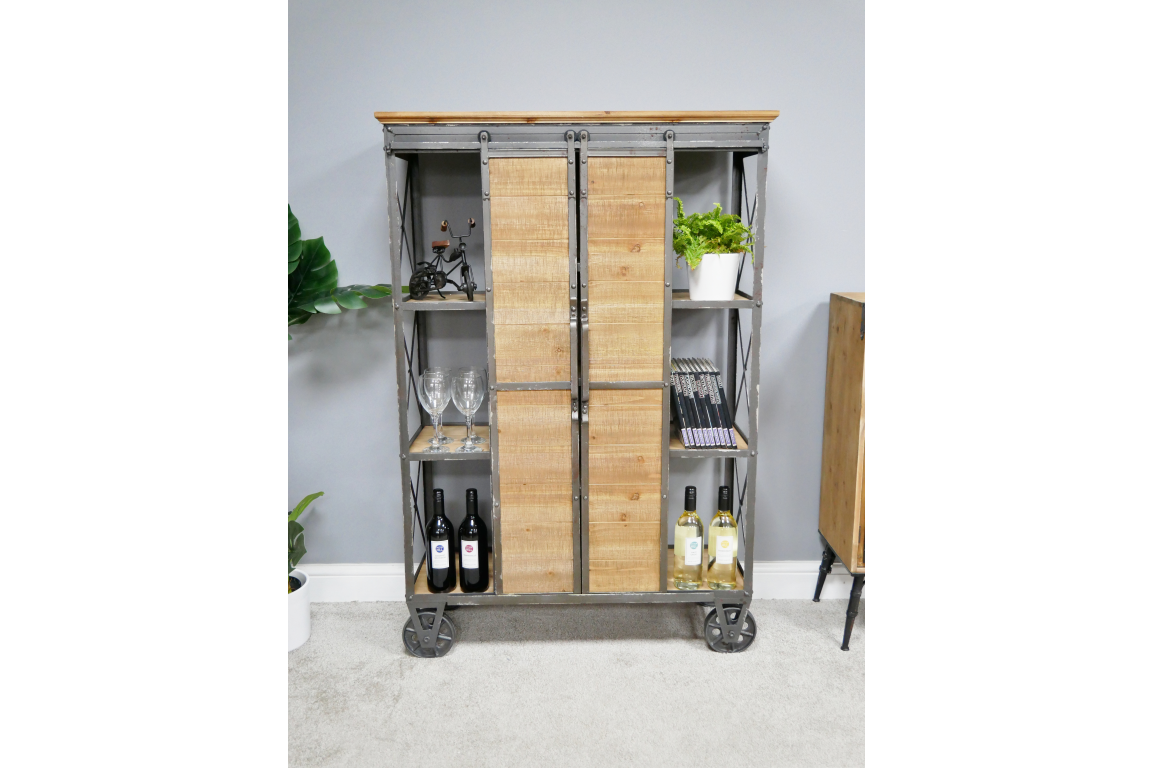 This industrial cabinet combines rustic charm with modern functionality, making it a standout piece in any room. The fir wood panels showcase a natural grain pattern, adding warmth and character to the overall design. The metal frame and hardware provide a sturdy and industrial feel, perfect for creating an urban loft aesthetic in your home.