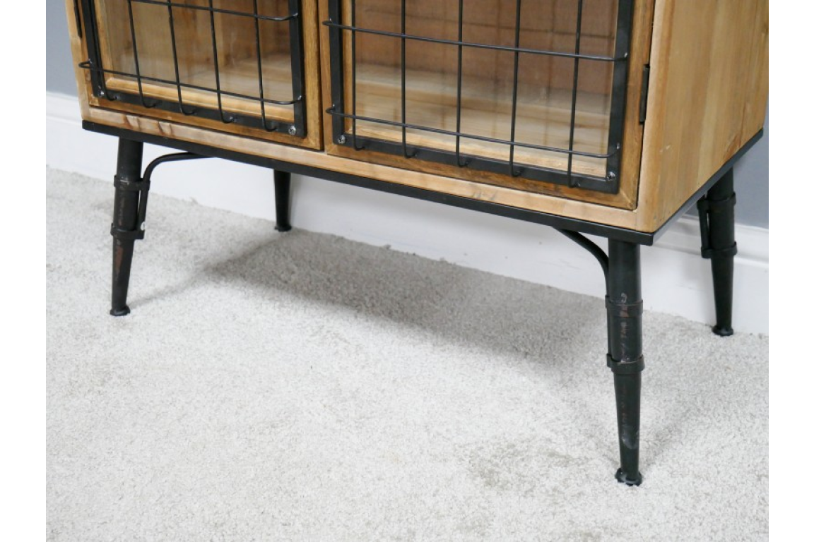 This industrial cabinet combines rustic charm with a touch of modern flair, making it a versatile addition to any home or office. The fir wood panels bring warmth and character to the piece, while the metal frame adds an industrial edge. With its distressed finish and clean lines, this cabinet effortlessly blends with both contemporary and vintage decor styles.