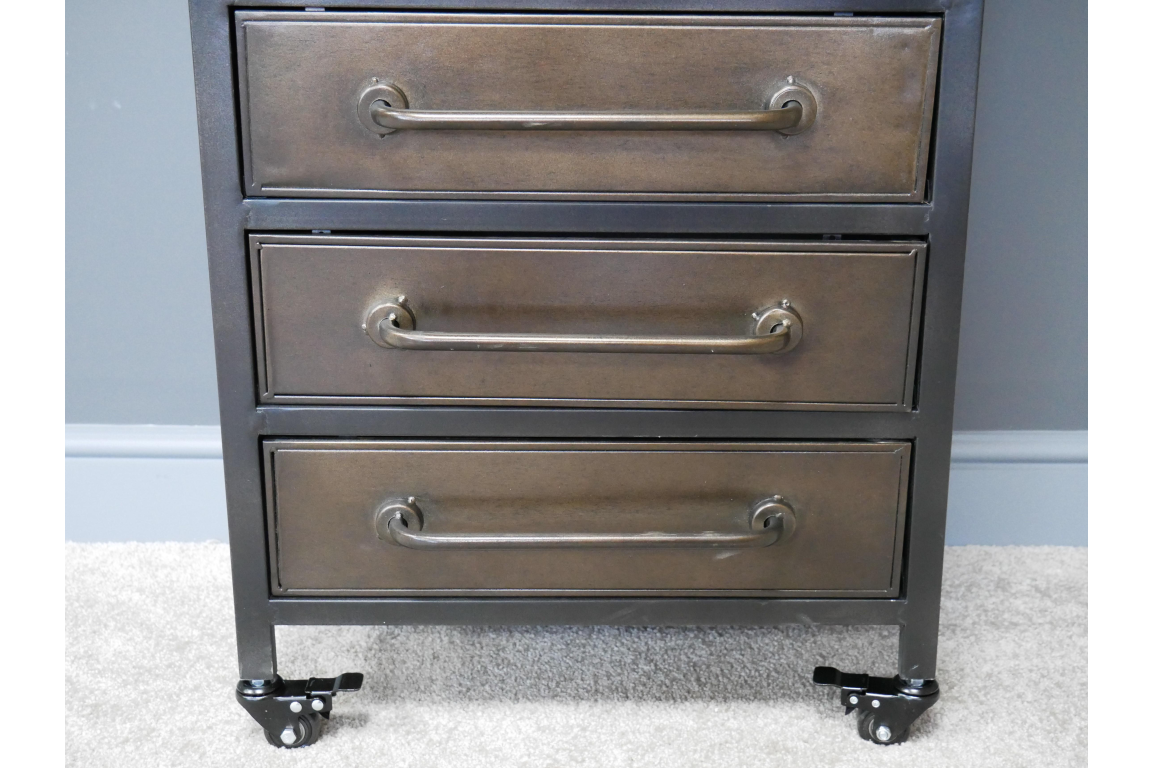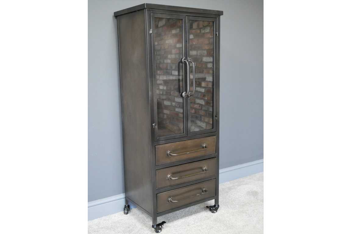 This industrial cabinet combines sleek metal with transparent glass panels for a modern and minimalist design. The clean lines and industrial-inspired accents make it a versatile piece that can complement various decor styles, from contemporary to industrial chic. The metal frame provides a sturdy and durable structure, while the glass panels add a touch of elegance and allow for visibility of the items stored inside.