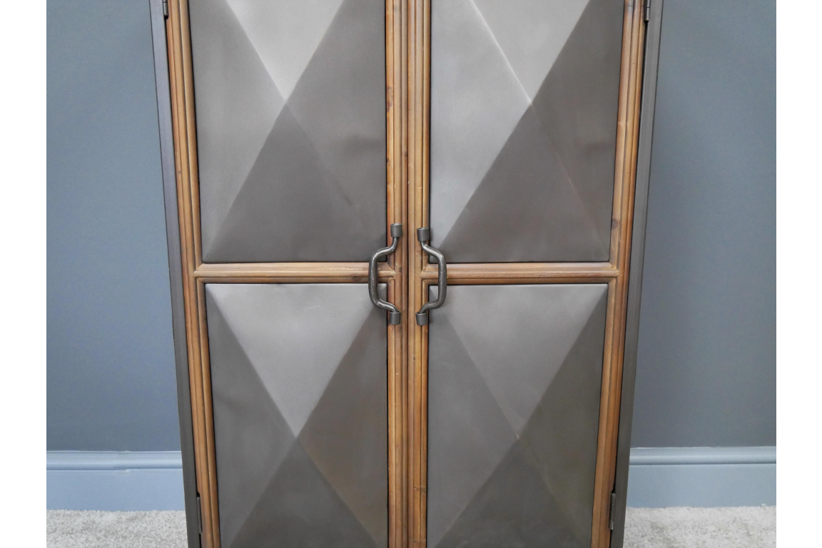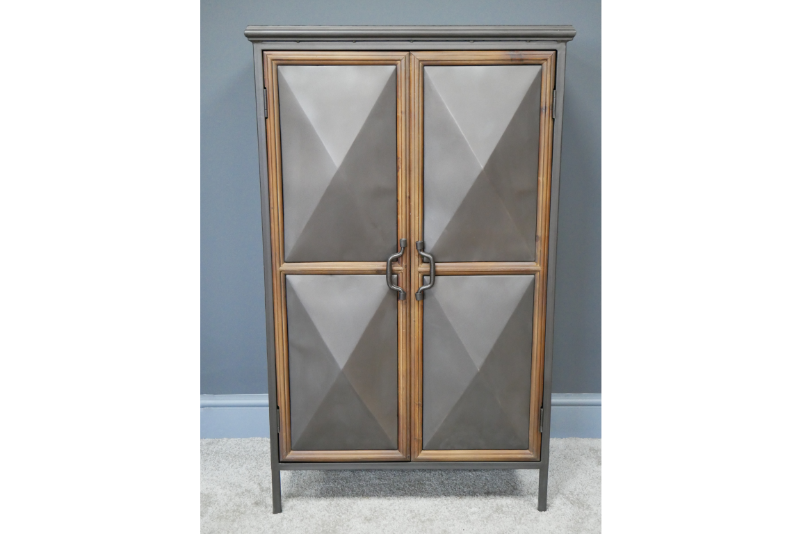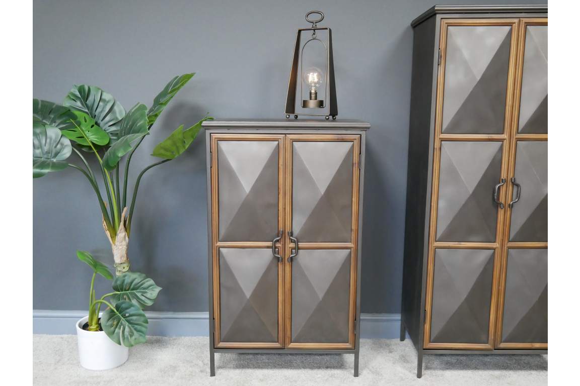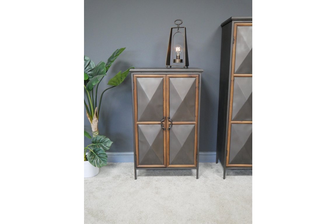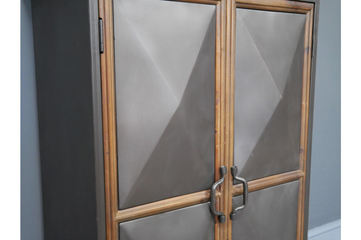 This industrial cabinet combines metal and wood materials to create a stylish and functional storage solution for any modern living space. The rugged metal frame adds an edgy industrial touch, while the warm wood panels soften the look, creating a perfect blend of rustic and contemporary design.