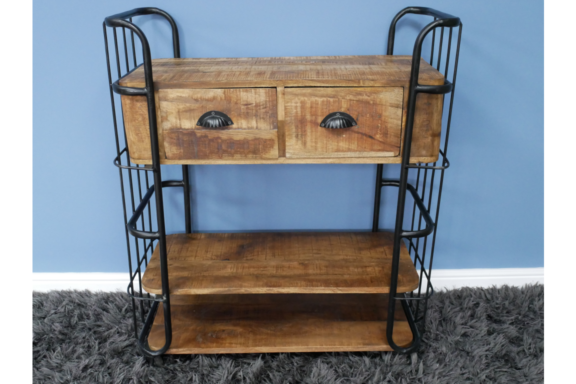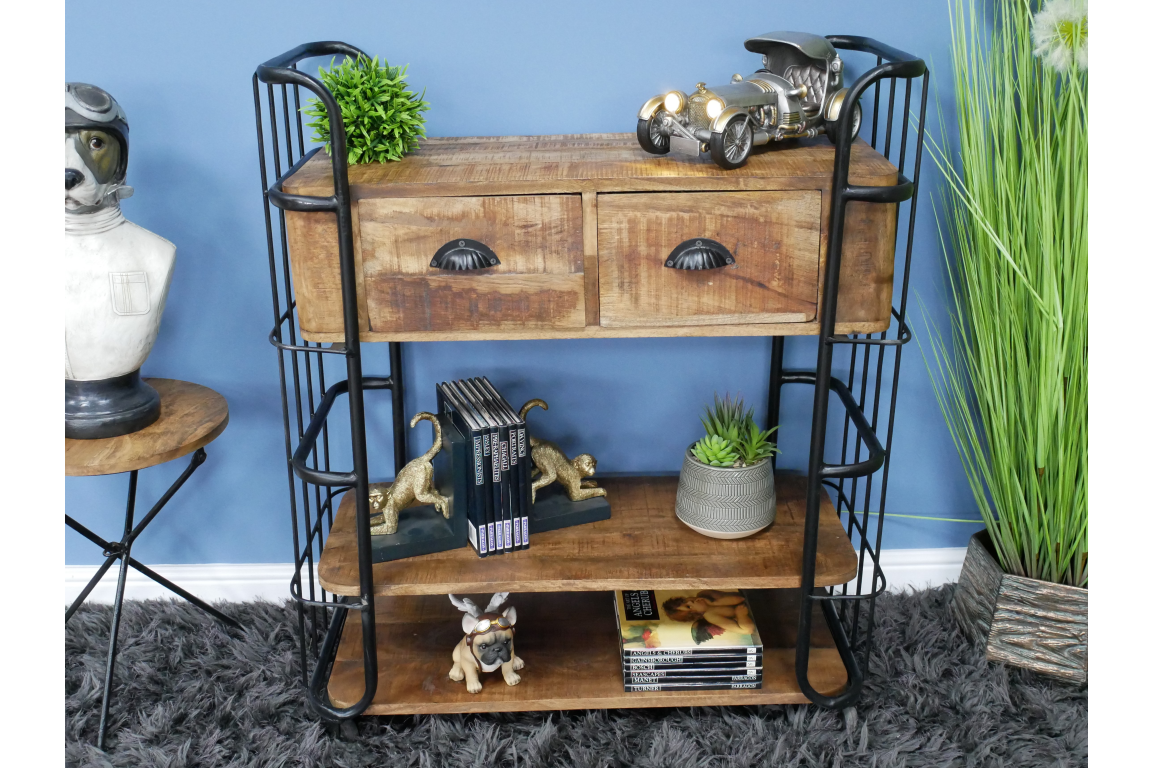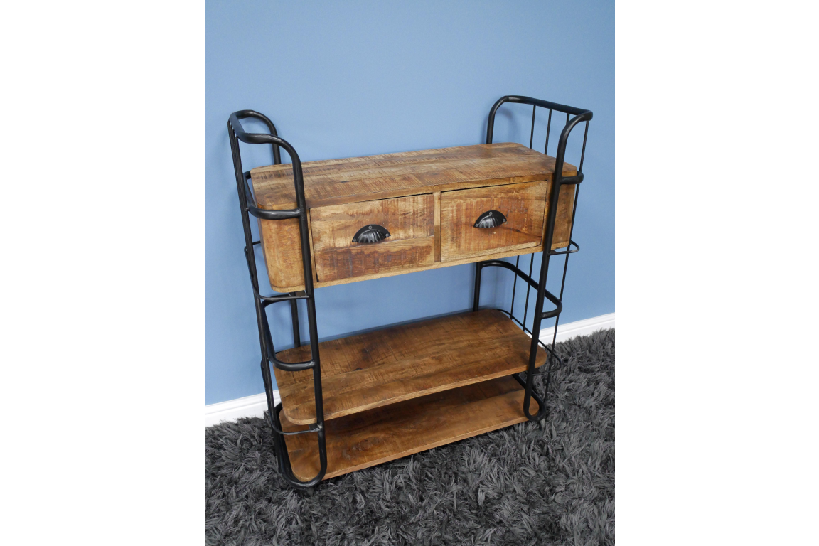 This industrial cabinet combines rugged charm with practical functionality, making it a versatile addition to any space. The iron frame exudes a raw, edgy look, while the warm tones and natural grain of the mango wood panels add a touch of warmth and character. Its clean lines and minimalist design make it a perfect fit for modern industrial or rustic interiors.