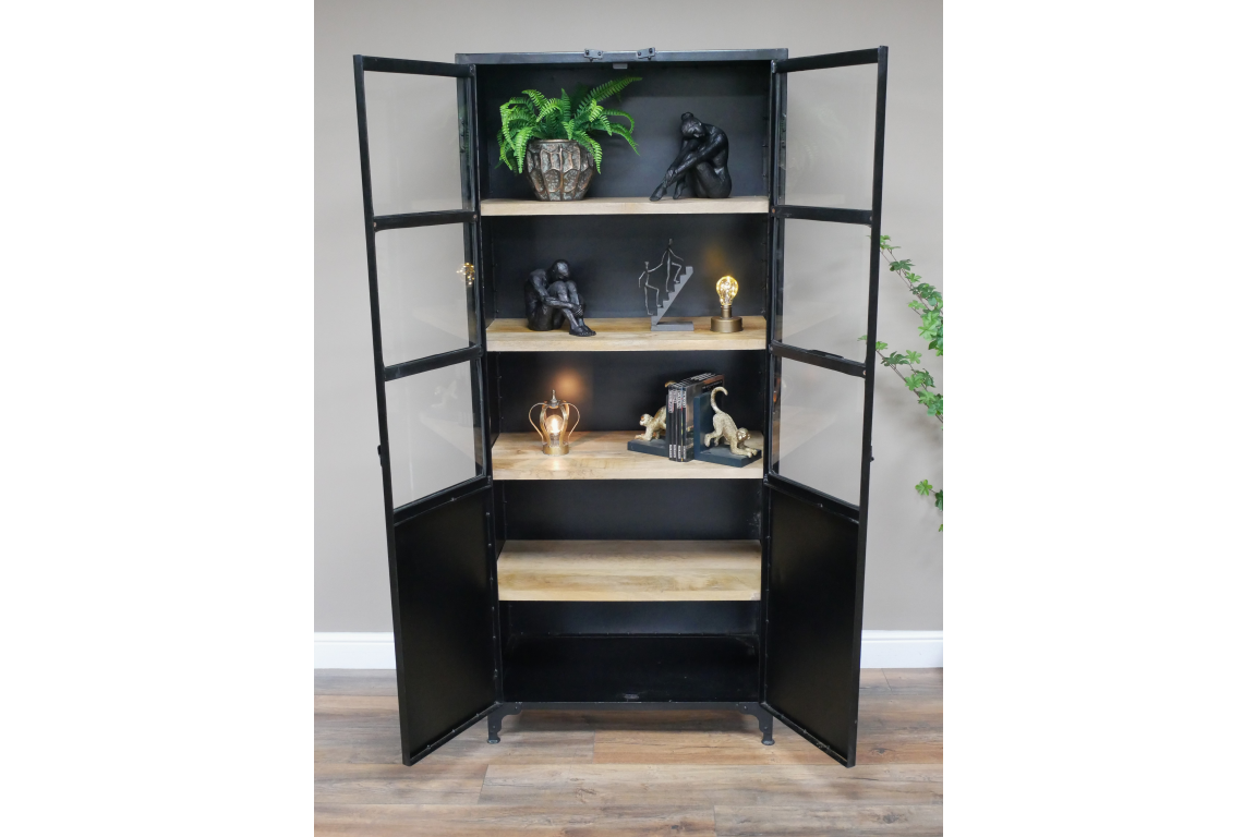 This industrial display cabinet combines rugged style with modern design, making it a versatile addition to any space. The sturdy iron frame provides a strong and durable structure, while the sleek glass panels offer a contemporary touch. Its industrial aesthetic is perfect for showcasing your favourite collectibles, books, or decorative items.