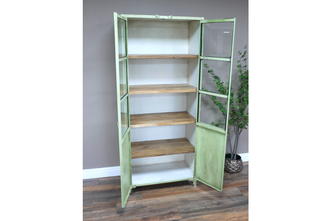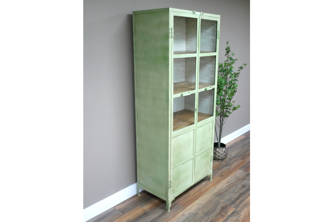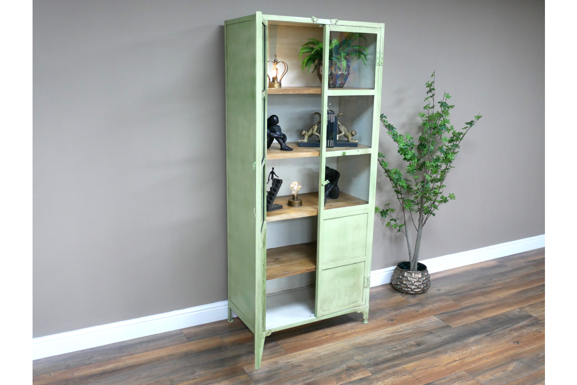 This industrial display cabinet combines rugged charm with modern elegance, making it a versatile addition to any contemporary living space. The sleek iron frame exudes an urban industrial vibe, while the clear glass panels provide a sophisticated touch, allowing you to showcase your treasured possessions in style.