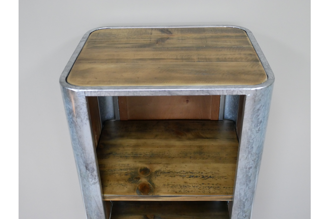 Crafted from sturdy metal and reclaimed wood, this display unit is built to last and can hold a variety of items such as books, plants, or decorative objects. The open shelves and spacious tabletop provide ample storage and display space, allowing you to showcase your favourite items while keeping your space organised and stylish.
