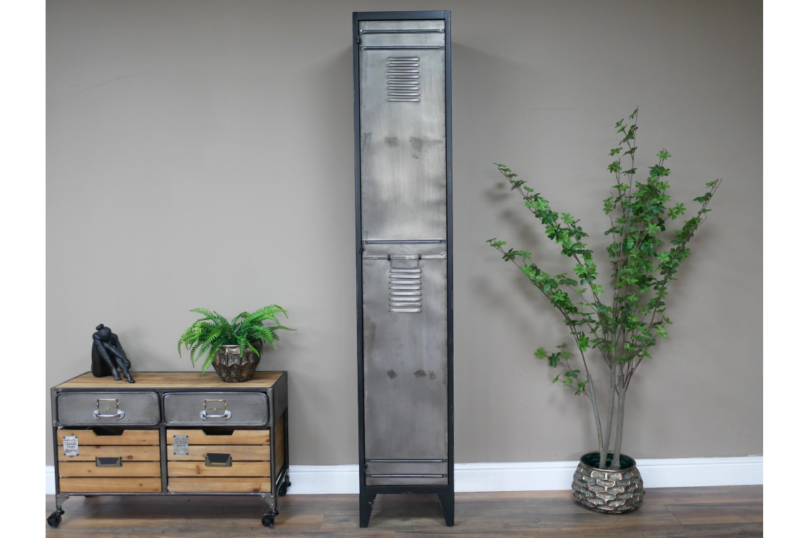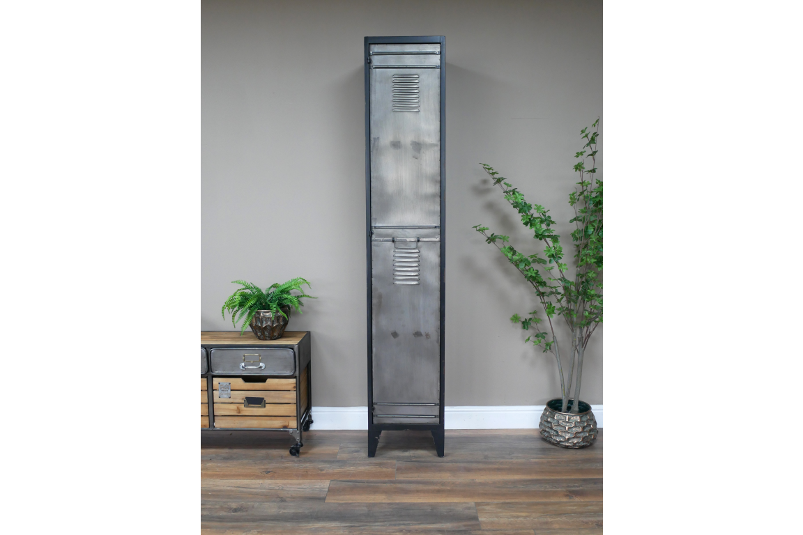 This Industrial Locker Cabinet exudes a rugged and utilitarian style that is perfect for adding an urban edge to any space. The cabinet features a sturdy construction with a distressed iron finish, giving it an authentic industrial look. Its simple yet bold design with clean lines and metal accents adds a touch of modern industrial charm to your home or office.