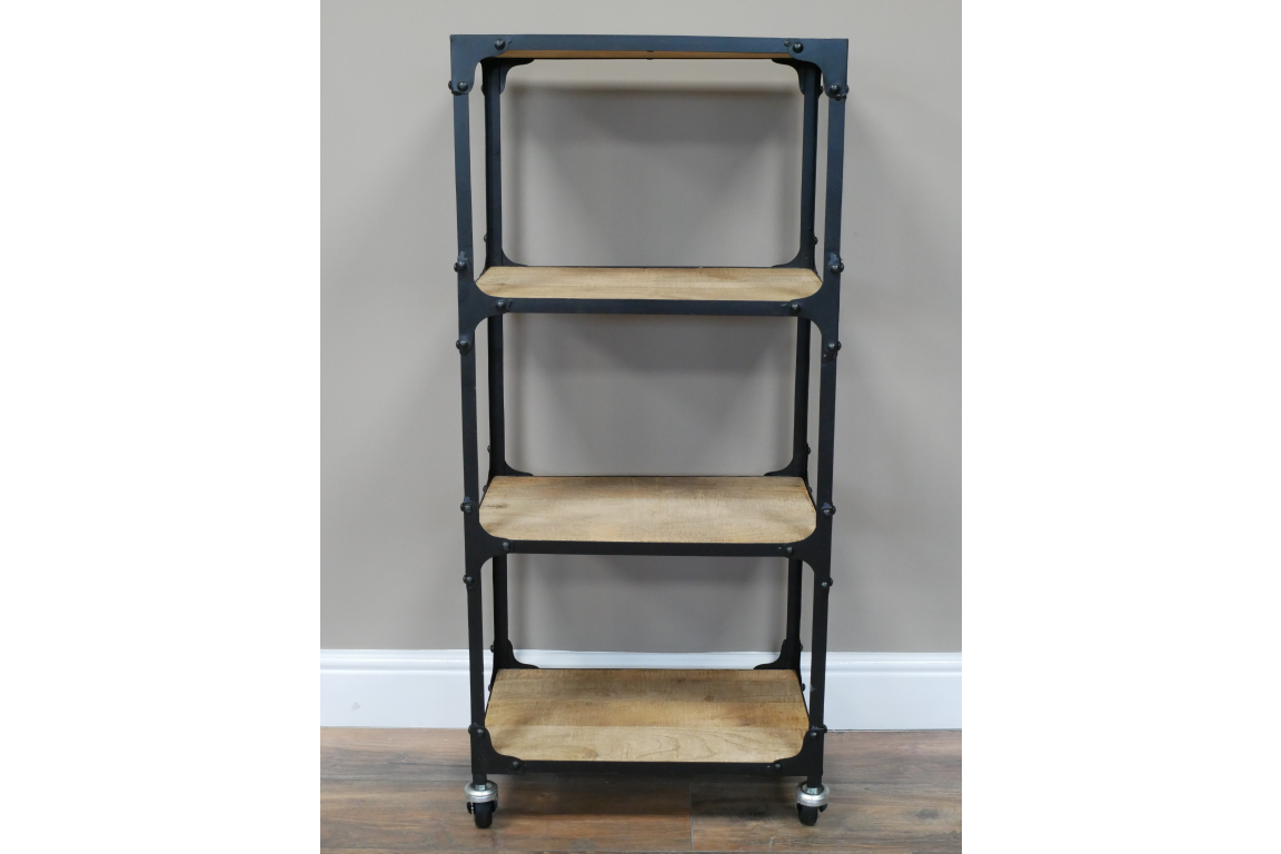 This industrial shelves unit combines modern style with rustic charm, making it a versatile addition to any home or office decor. The sturdy iron frame provides a sleek and industrial look, while the warm tones of the mango wood shelves add a touch of natural elegance.