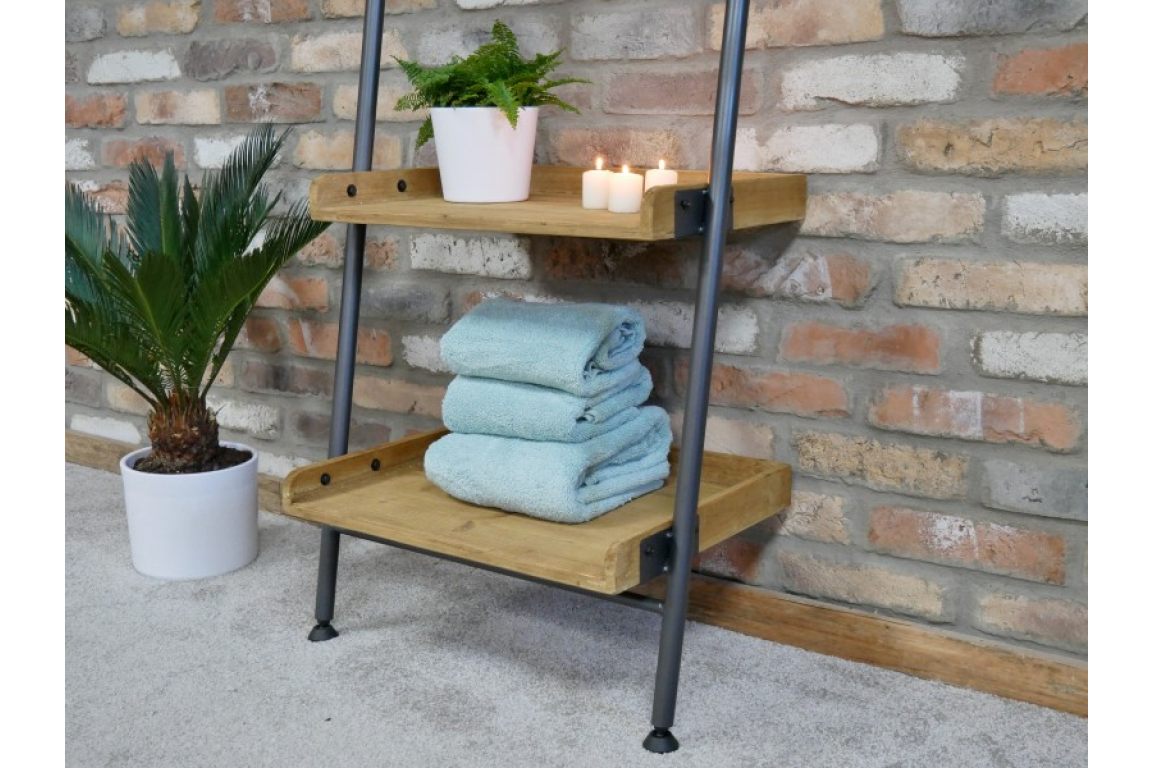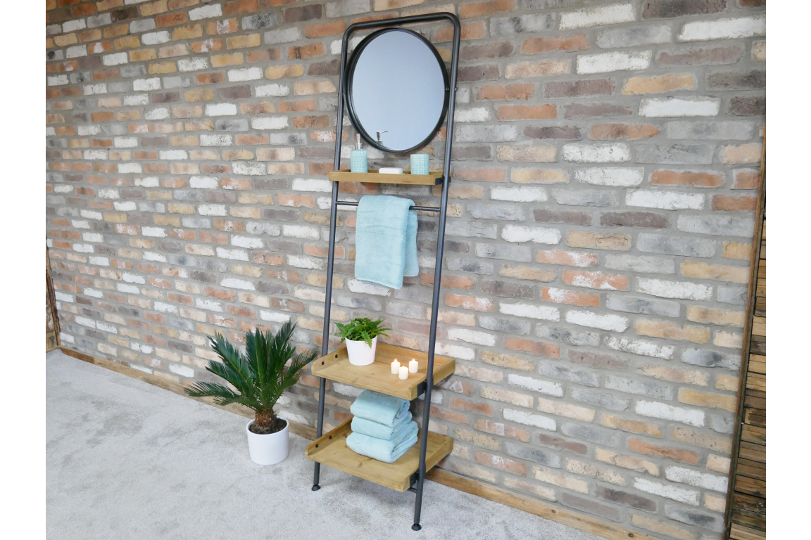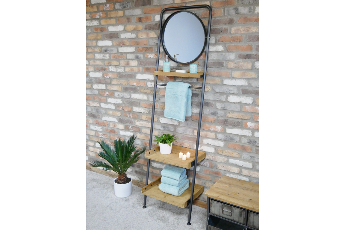 This industrial shelves and mirror set exudes a rugged yet sophisticated charm, perfect for adding character to any space. The sturdy metal frame contrasts beautifully with the warm tones of the fir wood shelves, creating a striking visual impact.