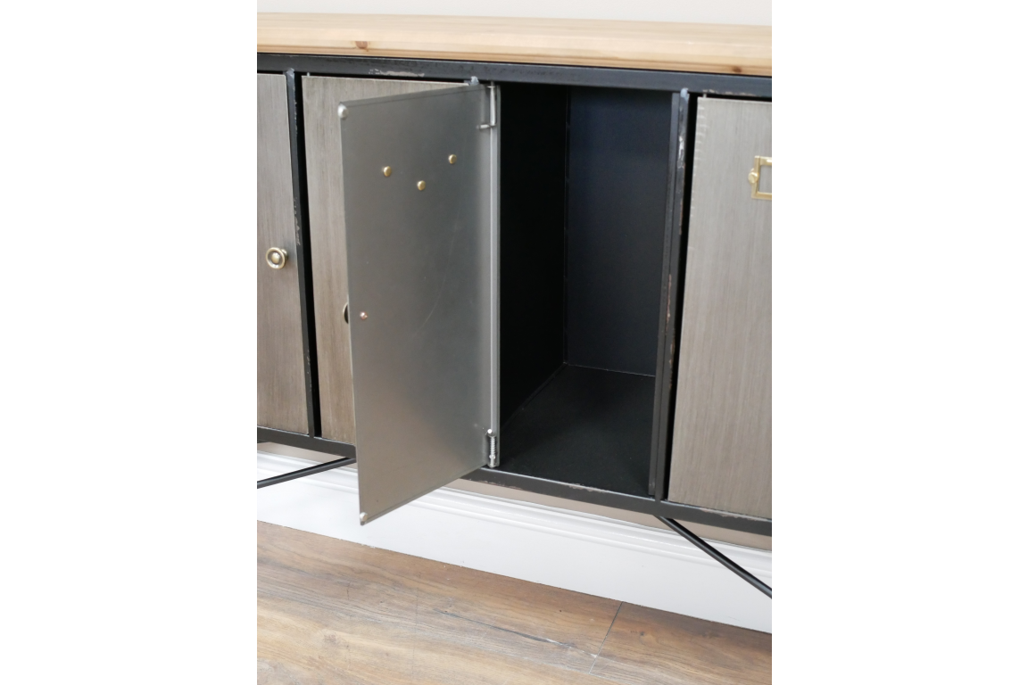 With ample storage space behind its metal doors, this cabinet is perfect for keeping your home or office organised. Whether used in a living room to store books and media equipment, or in a workshop to hold tools and supplies, this industrial storage cabinet combines style with functionality.