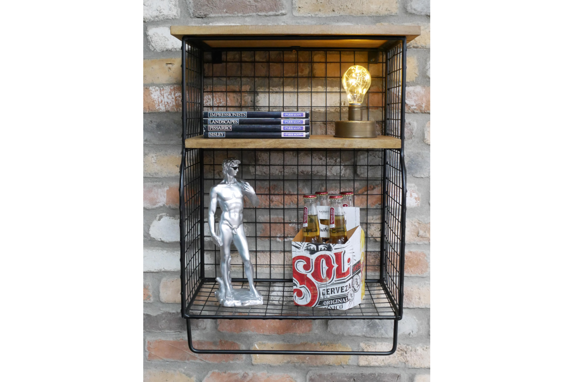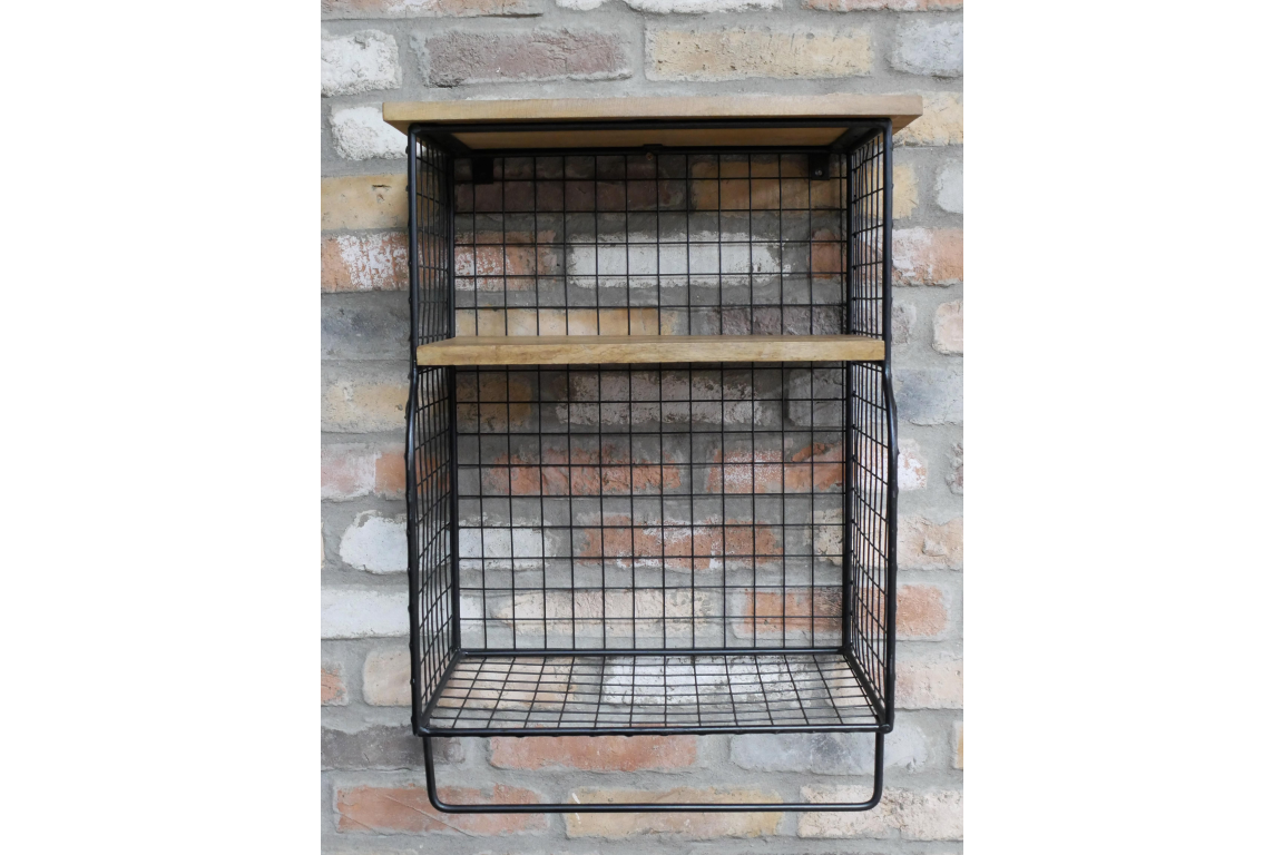 This industrial wall unit exudes a rugged charm with its robust iron frame and warm mango wood shelves. The combination of metal and wood creates a striking contrast, giving the piece a modern industrial look that complements a variety of decor styles.
