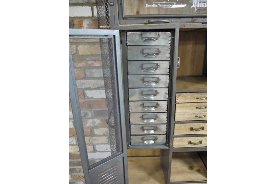 The Large Industrial Cabinet exudes a rugged and utilitarian style, perfect for adding a touch of industrial charm to any living space. Its sturdy metal frame and distressed finish give it a raw and authentic look, reminiscent of a vintage industrial warehouse.