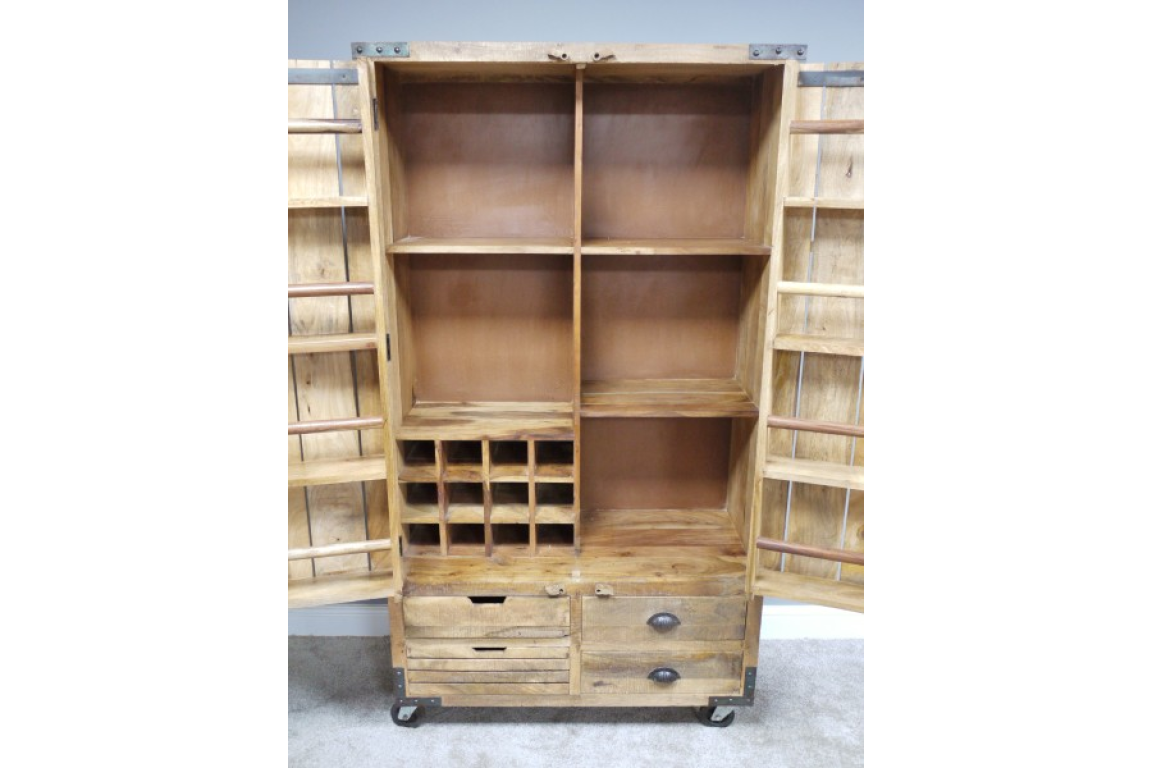 This large storage cabinet exudes a timeless elegance with its classic design and rich mango wood construction. The warm tones of the mango wood bring a touch of natural beauty into any room, while the sleek lines and minimalist silhouette add a modern touch to the traditional piece.