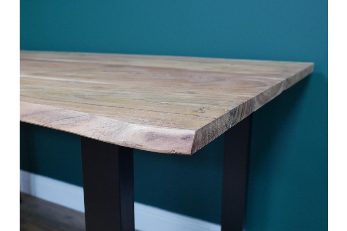 The Living Edge Table effortlessly combines industrial style with natural elements to create a striking piece of furniture for any contemporary home. The table features a unique design with a live edge acacia wood top, showcasing the natural beauty of the wood grain. The iron legs provide a sturdy and modern contrast to the organic feel of the wood, making it a versatile piece that can complement a range of interior styles.