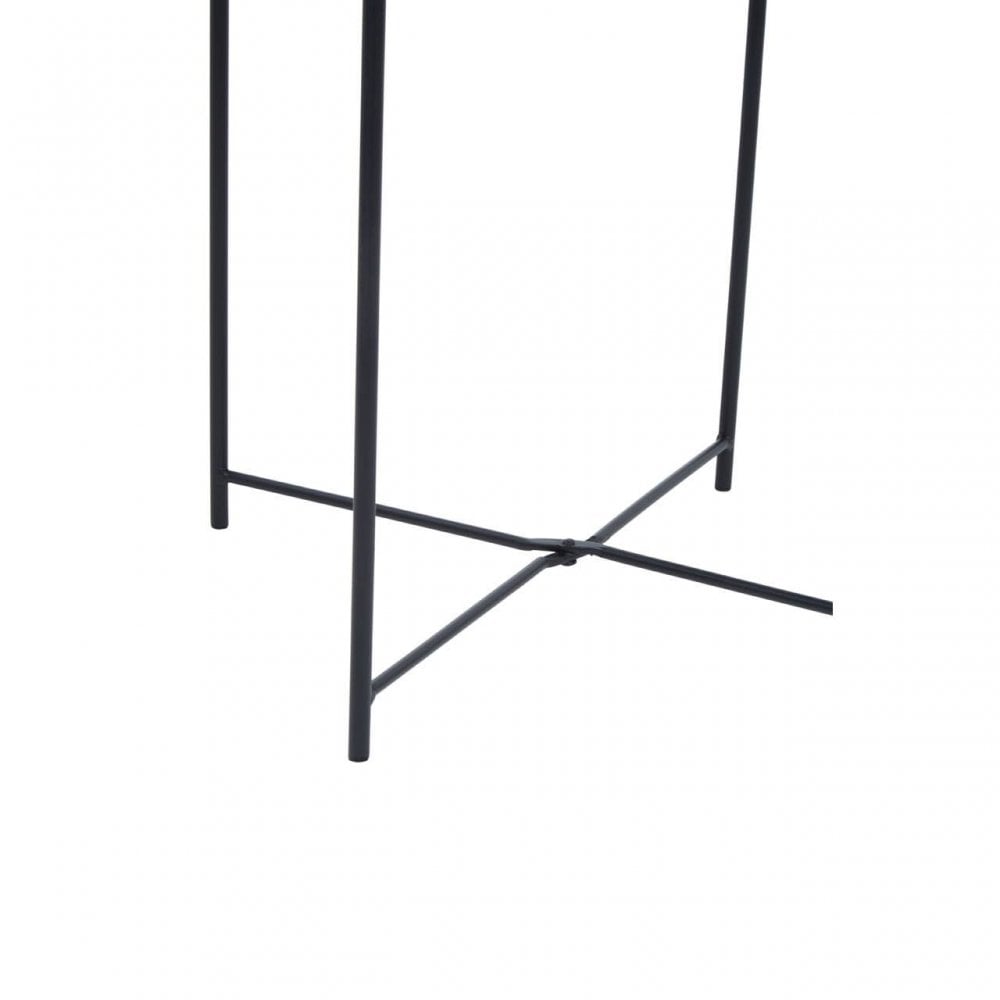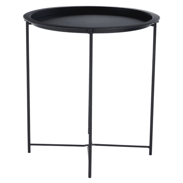 The Bronzo Round Black Side Table features a sleek and minimal design with a clean intersecting base and a round tabletop. Crafted from black powder-coated metal, it exudes modern elegance and durability, ideal for contemporary spaces seeking a minimalist aesthetic.