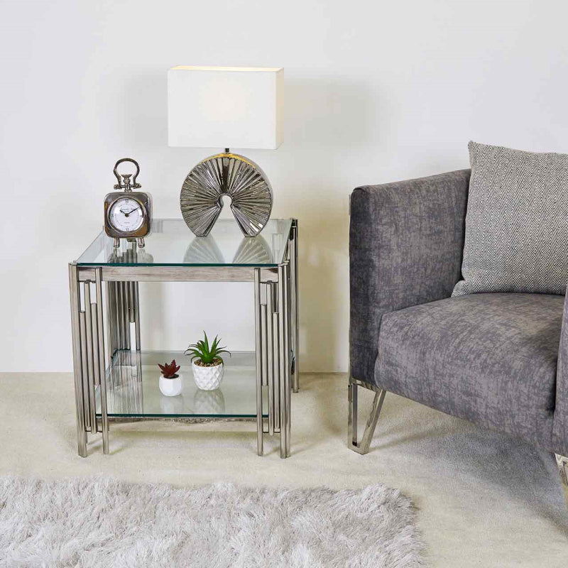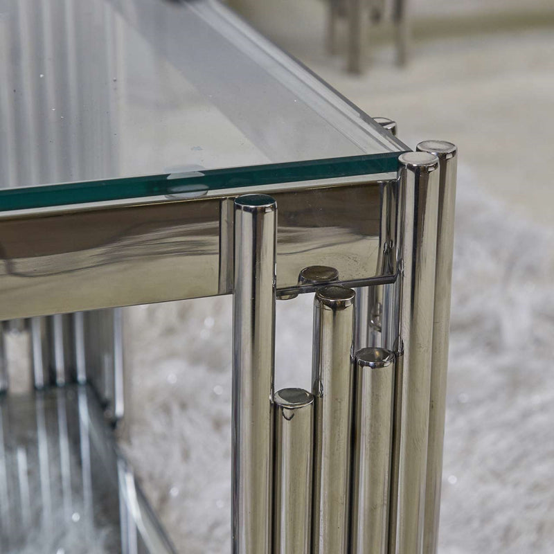 Elevate your living space with the Cohen Steel Tubes and Clear Glass End Table, a stunning fusion of modern design and functionality. Crafted with a sleek stainless steel frame and a pristine clear glass top, this piece serves as a versatile accent, perfect for any room. Whether used as a bedside table or a stylish plant stand, its contemporary aesthetic complements a variety of interiors while providing practical elegance.