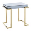 Discover the Barrington End Table, boasting a grey mirrored top and stainless steel legs with a gold finish. This luxe accent piece blends functionality with aesthetic appeal, perfect for modern living spaces.