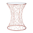 Crafted with delicate iron twigs and a concave silhouette, this table exudes sophistication and style. The unique corseted effect created by the slim rods adds a touch of elegance to any room. Topped with tempered glass, this piece is a perfect blend of decorative flair and functionality.