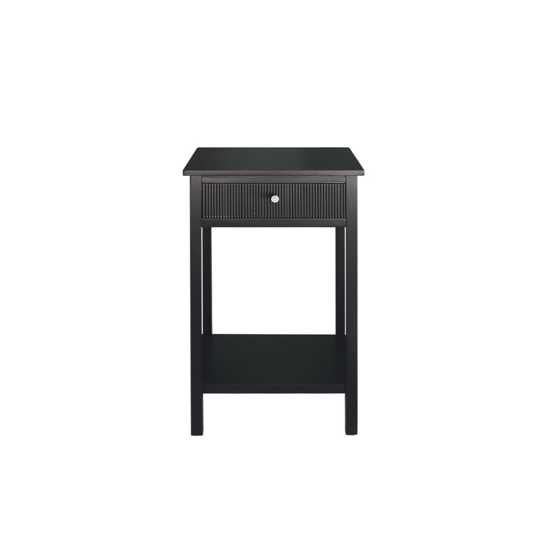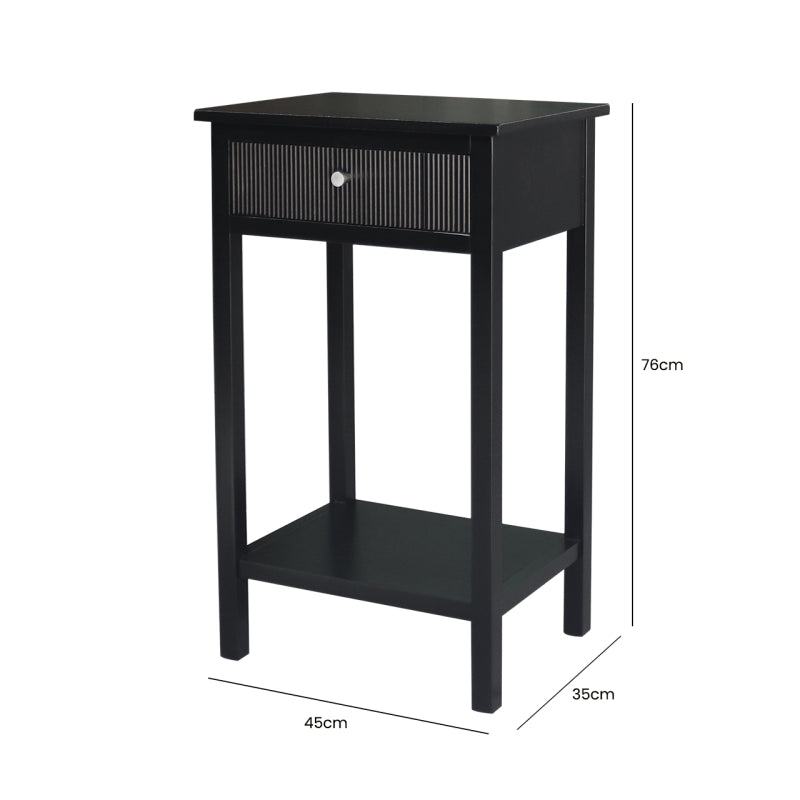 The Lindon Black Wood End Table effortlessly combines elegance with functionality, making it an exquisite addition to any living space. Featuring a beautifully grooved drawer front and the option of stylish nickel or gold effect knobs, this piece not only provides ample storage but also enhances your decor. Its versatile design allows it to serve as a bedside, side, or occasional table, ensuring it complements your lifestyle beautifully.