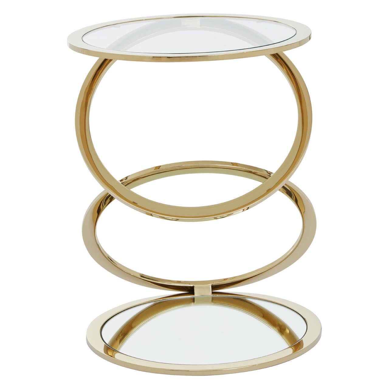 Elevate your living space with our Golden Ring Glass End Table. Featuring a stunning gold ring base design that adds a touch of sophistication and style to any room. Crafted with a clear glass top and durable gold-finished stainless steel, this modern end table is both elegant and functional, perfect for showcasing your favorite decor pieces or for enjoying your morning coffee in style.