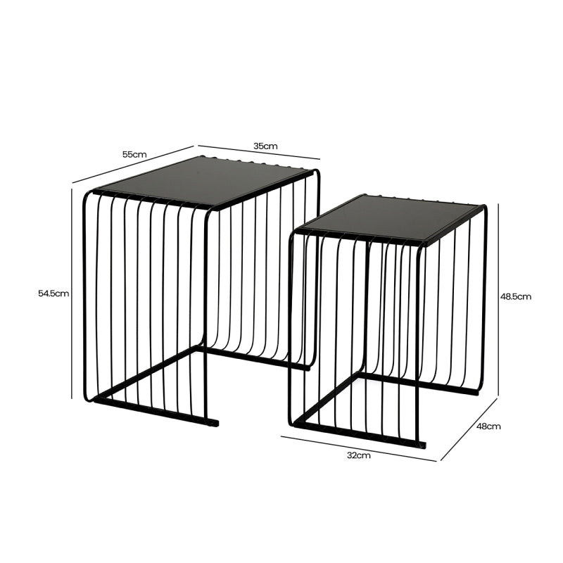Elevate your living space with our exquisite set of two black metal nesting tables, featuring sleek black glass tops that embody modern sophistication. Perfectly designed for versatility, these tables can be used together or separately, seamlessly blending into any contemporary interior.