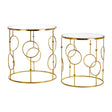 Elevate your living space with this set of two exquisite gold metal tables featuring smooth mirrored glass tops. Perfect for showcasing your traveller or fusion decor, these tables add a touch of warmth and sophistication to any room. Whether used as side tables or as part of a metallic-themed arrangement, the Avantis tables are sure to make a stylish statement in your home.