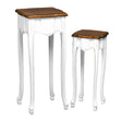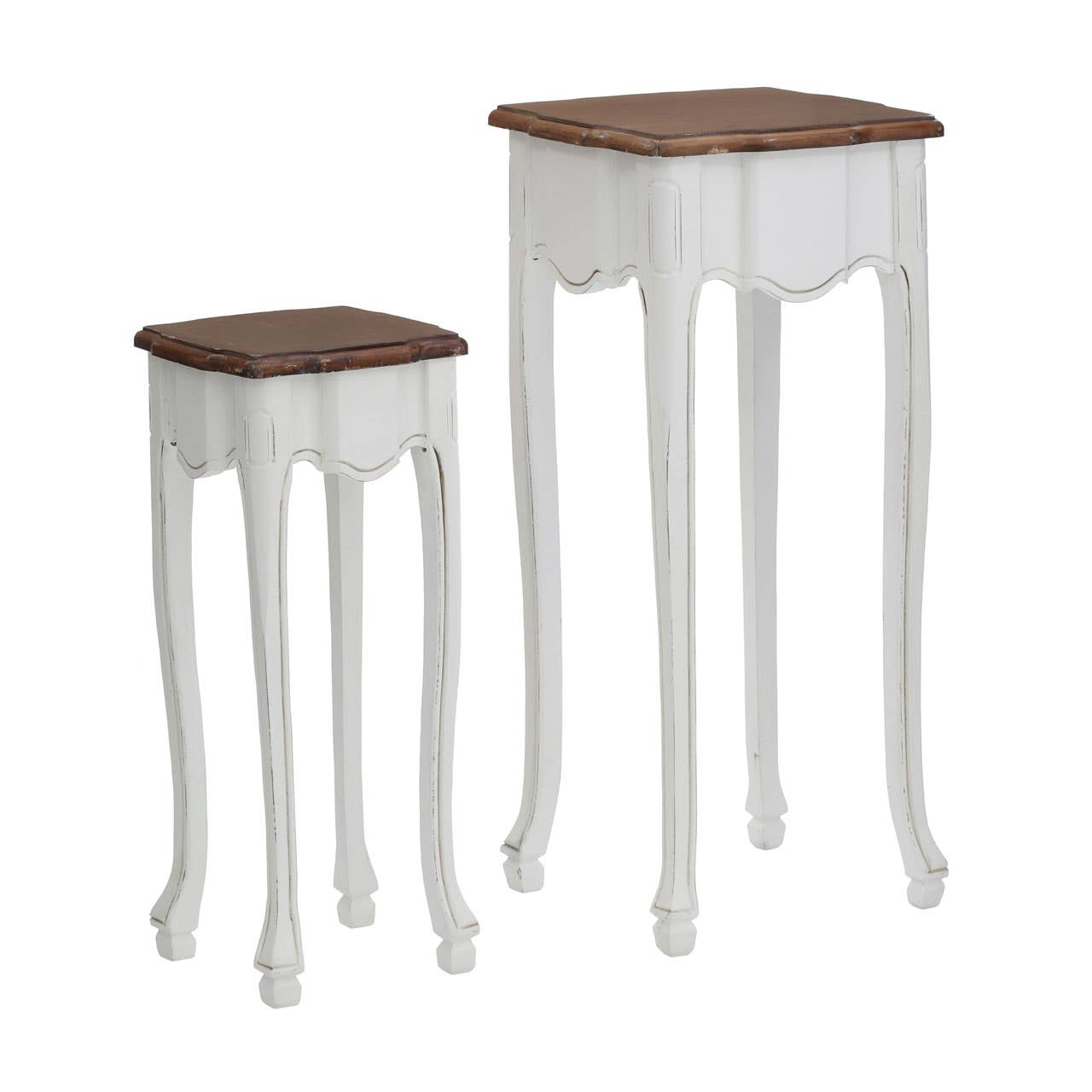 Elevate your living space with the Serena set of two accent tables. Featuring a sleek high gloss finish on the legs and a beautiful brown wooden top, these tables blend seamlessly with modern home decor. Keep your space stylishly organized and tidy with this chic and functional furniture set.