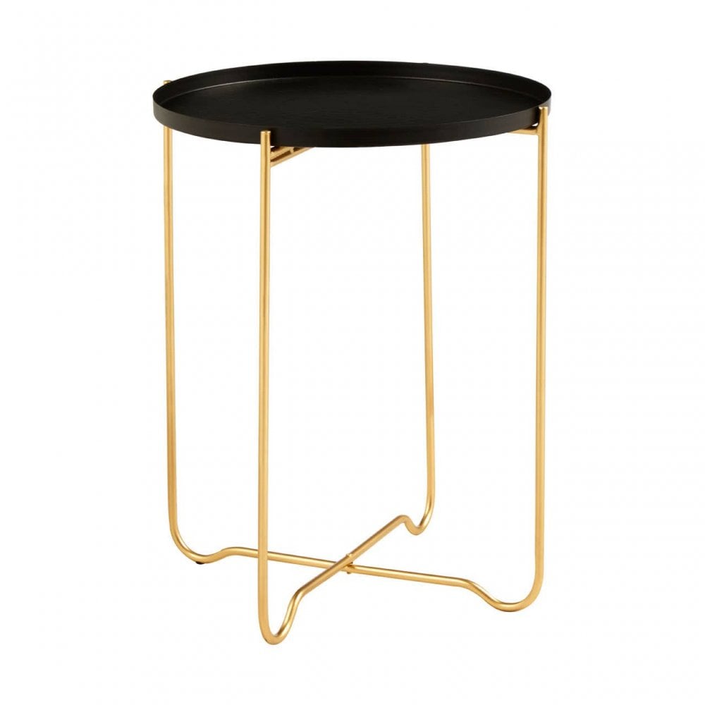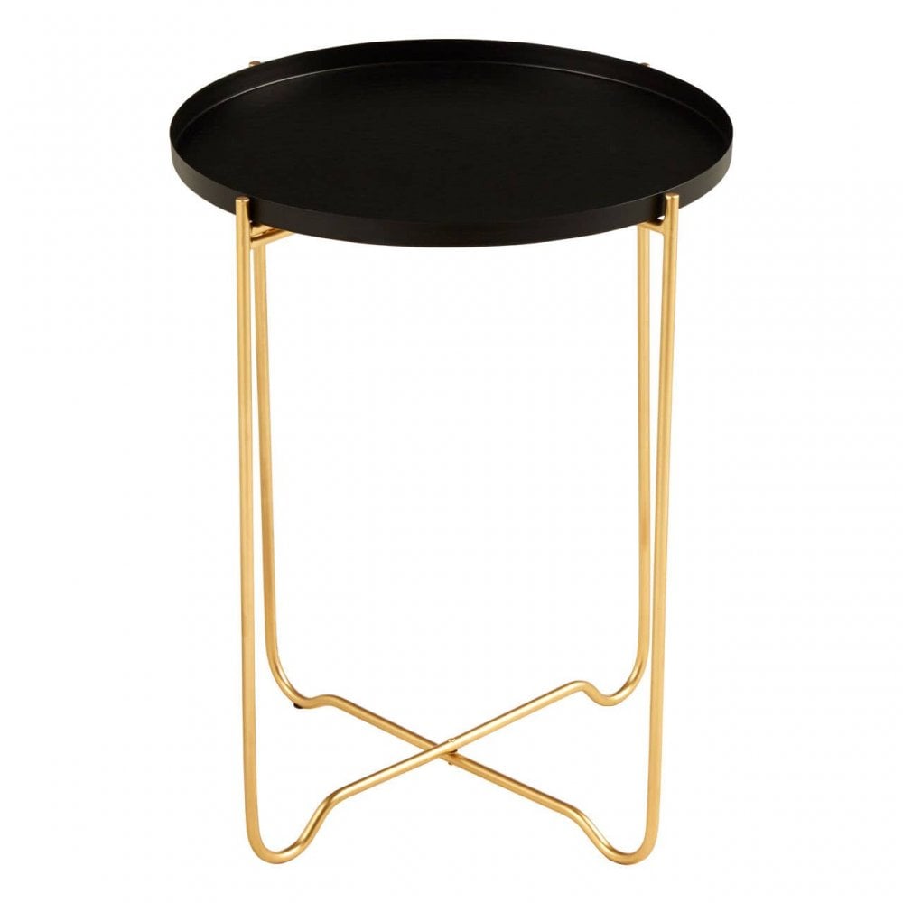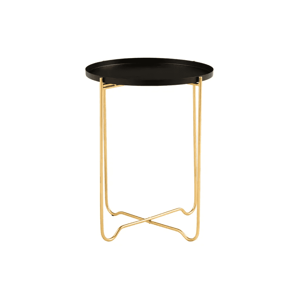 The Titan Black Finish Round Top Side Table combines a slender metal frame with a sleek and sturdy design. Its intersecting sledge base and contemporary luxe appeal ensure it enhances any sophisticated space.