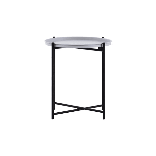 Enhance your decor with the Orion Side Table featuring a Round Grey Top, complemented by black finish iron legs and a lattice base. This sleek and minimalist design adds functional style to any room.