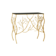 The Sterling Rectangular Table With Black Top brings contemporary flair with its gold finish and glinting acrylic details. This console table features a wood top and gold metal frame, offering a stylish and functional addition to any modern interior.