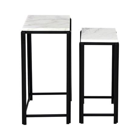 Set Of 2 Lena White Marble End Table With Black Metal Legs