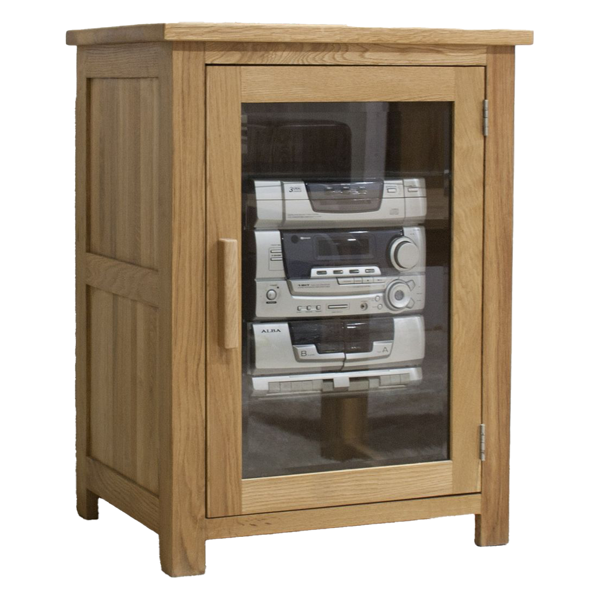 Enhance your home entertainment setup with our Opus HiFi Unit crafted from 100% solid oak. Designed for both style and functionality, this unit boasts a sleek glass-fronted door that beautifully showcases your electronics while keeping them easily accessible. The adjustable glass shelves cater to your specific storage needs, providing a versatile solution for organising your media essentials. Finished with a clear lacquer, this unit exudes a timeless charm that complements any interior decor.