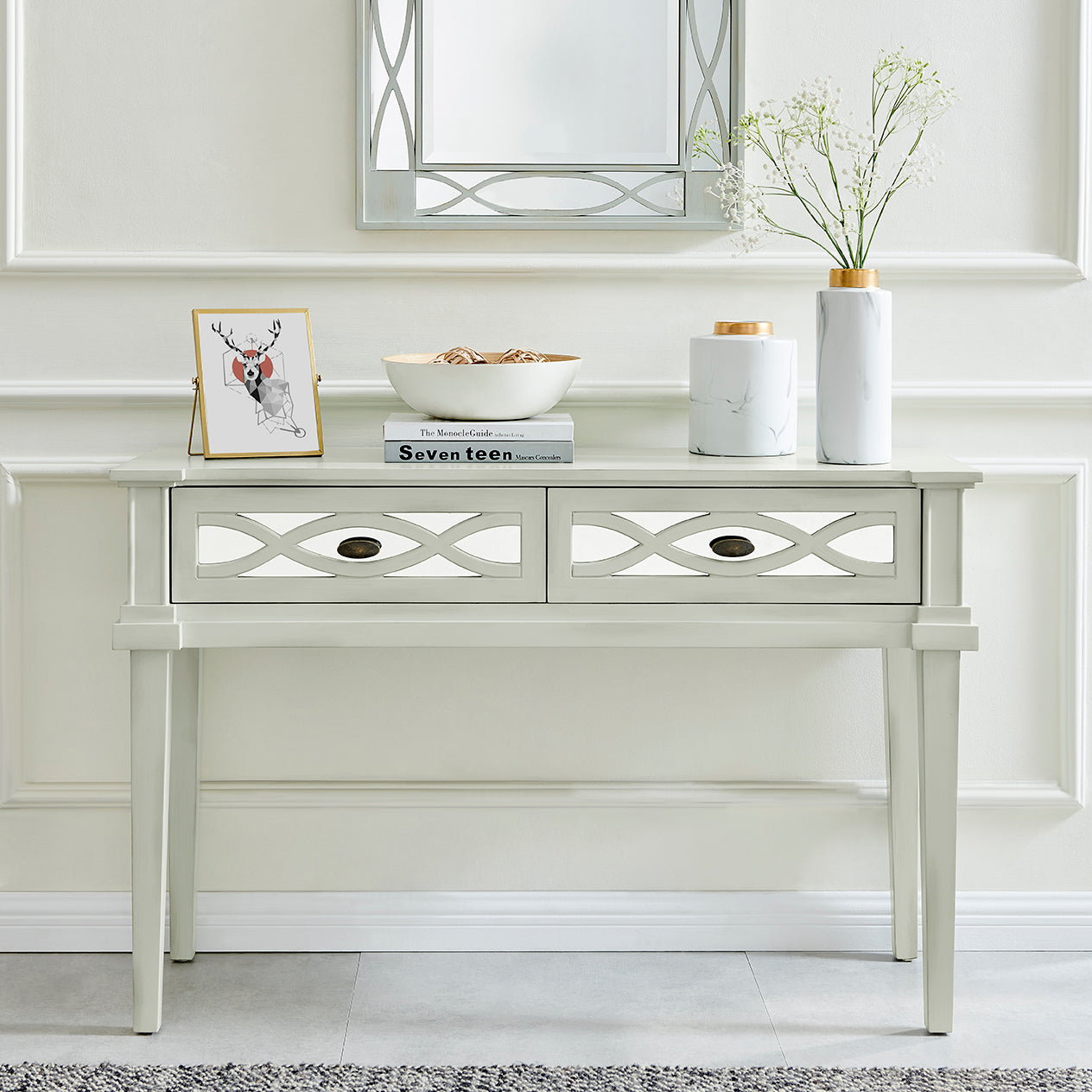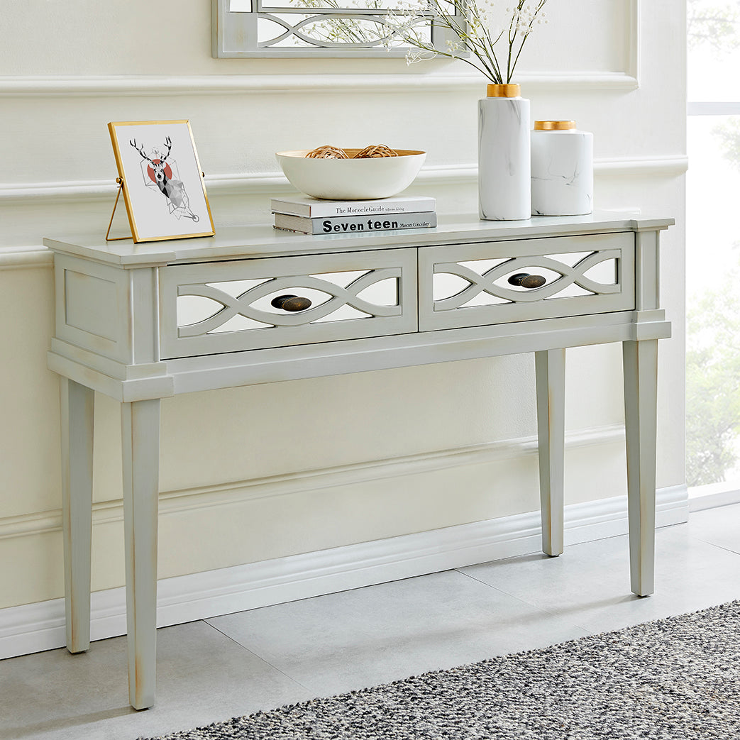 The Modena Console Table effortlessly combines style and functionality to elevate your living space. With 2 spacious drawers and soft-close mechanisms, this table offers ample storage while ensuring quiet and smooth operation. The mirrored glass drawer front panels add a touch of elegance and sophistication to your home.